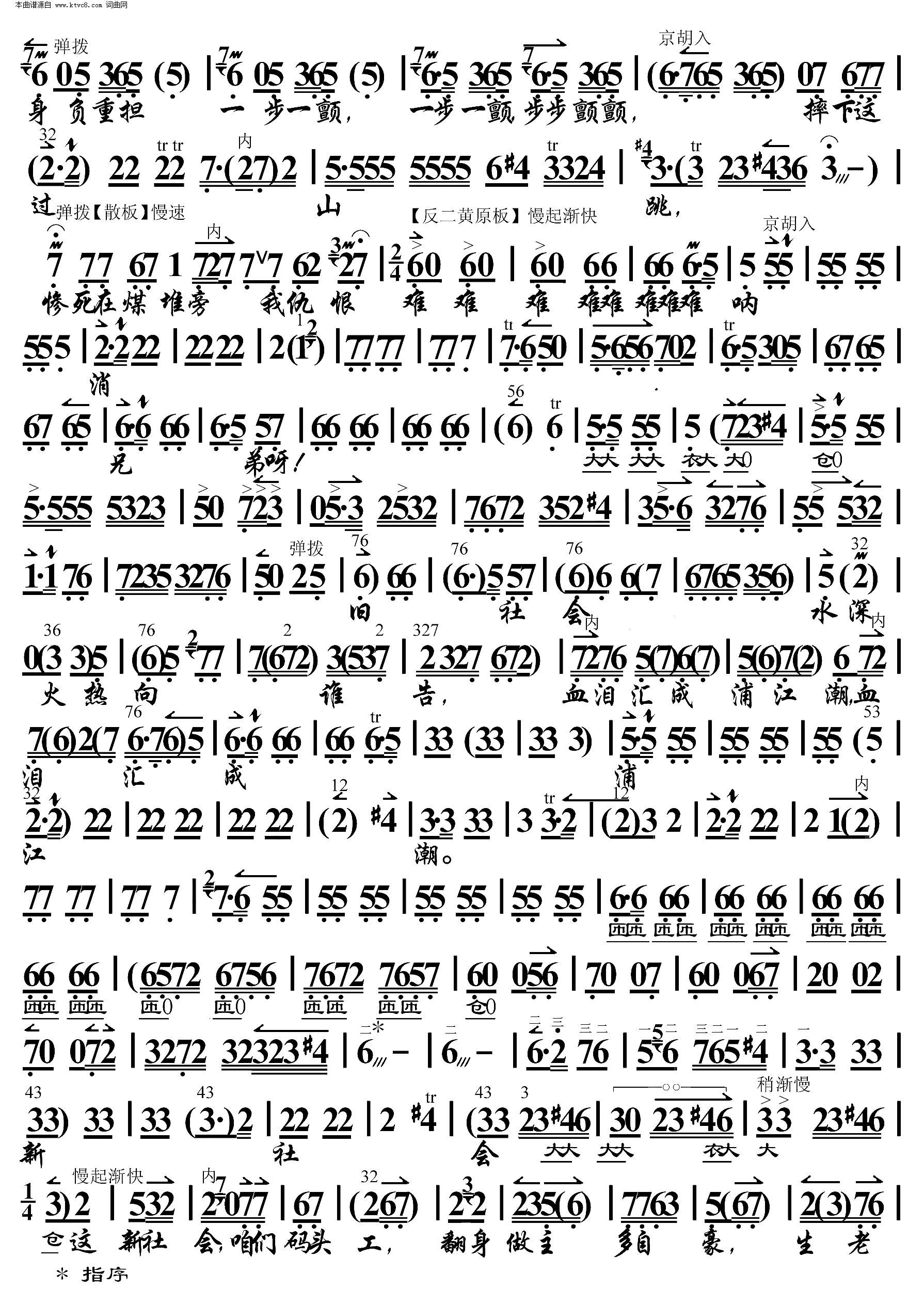 海港 共产党毛主席恩比天高 京胡伴奏谱