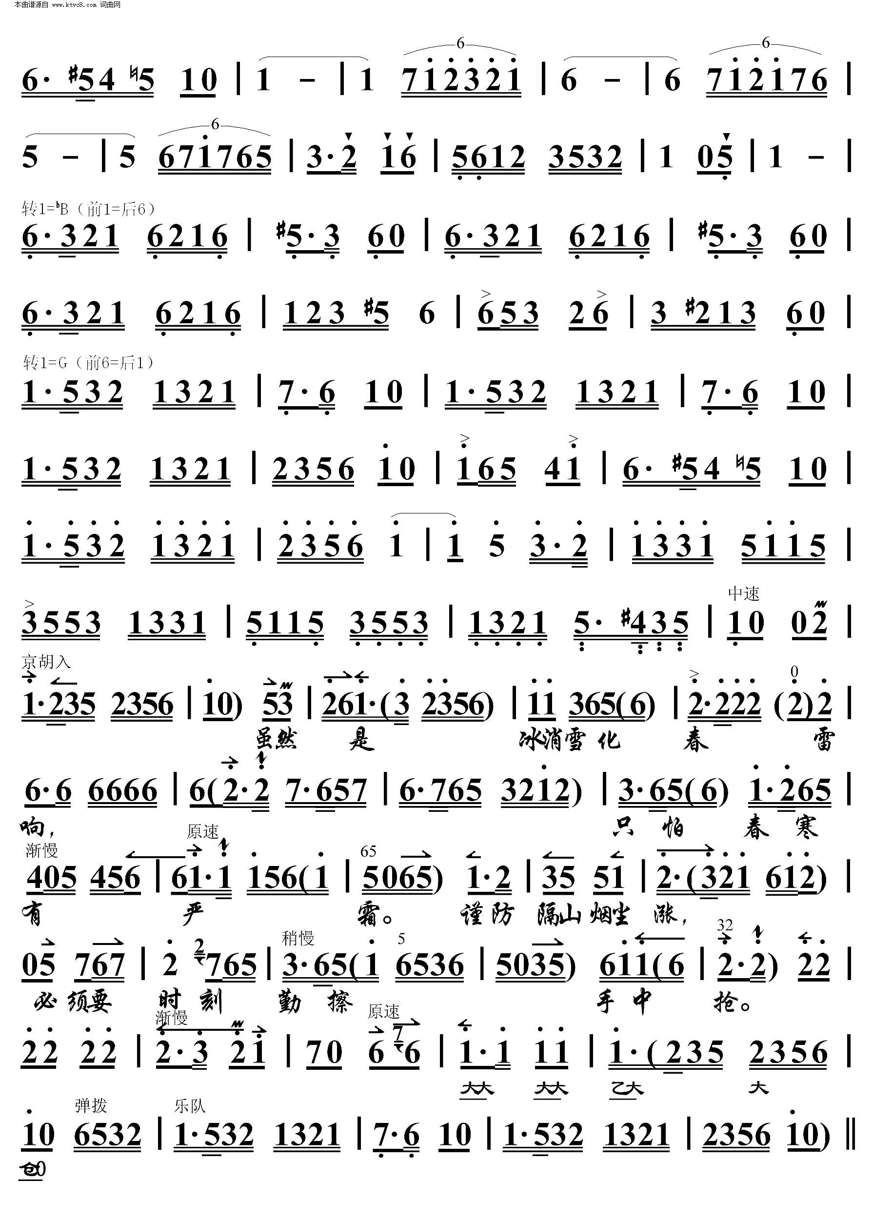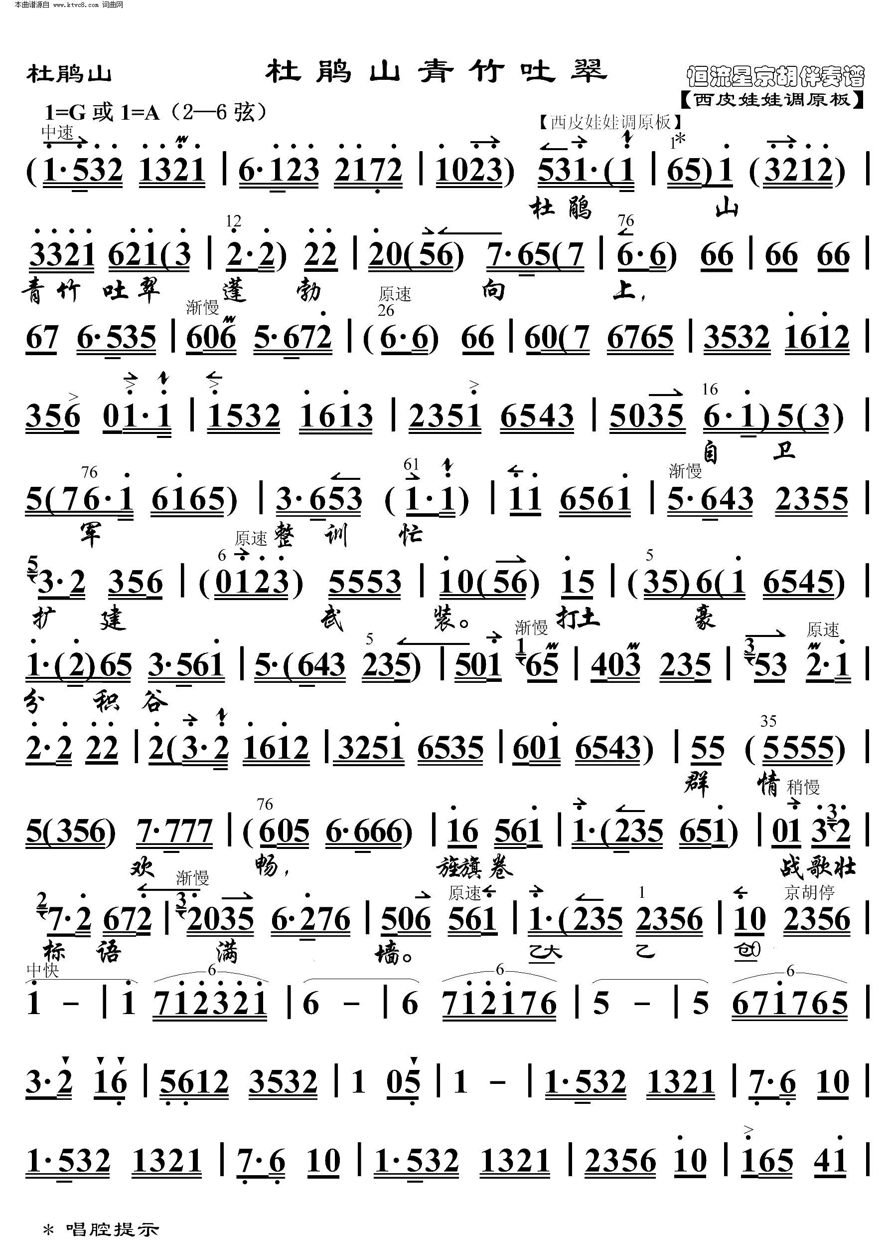 杜鹃山 杜鹃山青竹吐翠 京胡伴奏谱