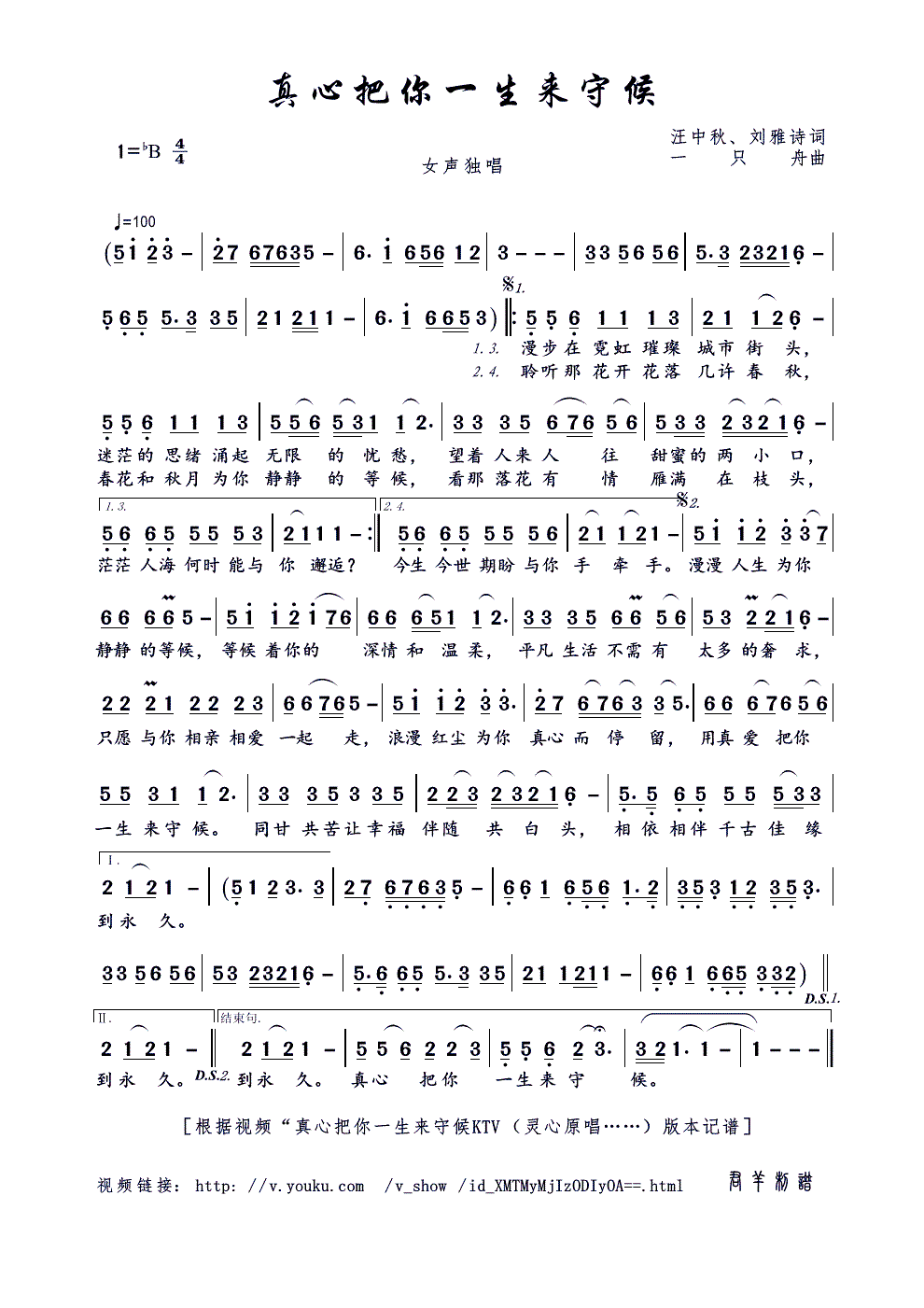 > 真心把你一生来守候 汪中秋