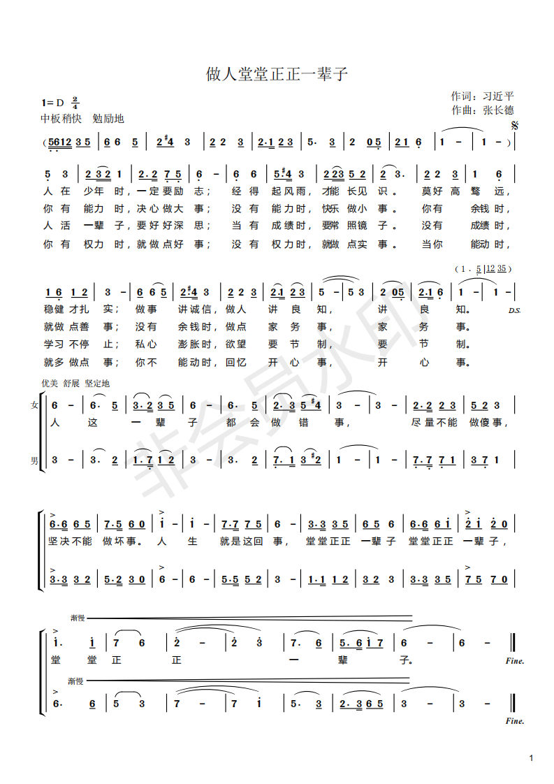 > 堂堂正正一辈子