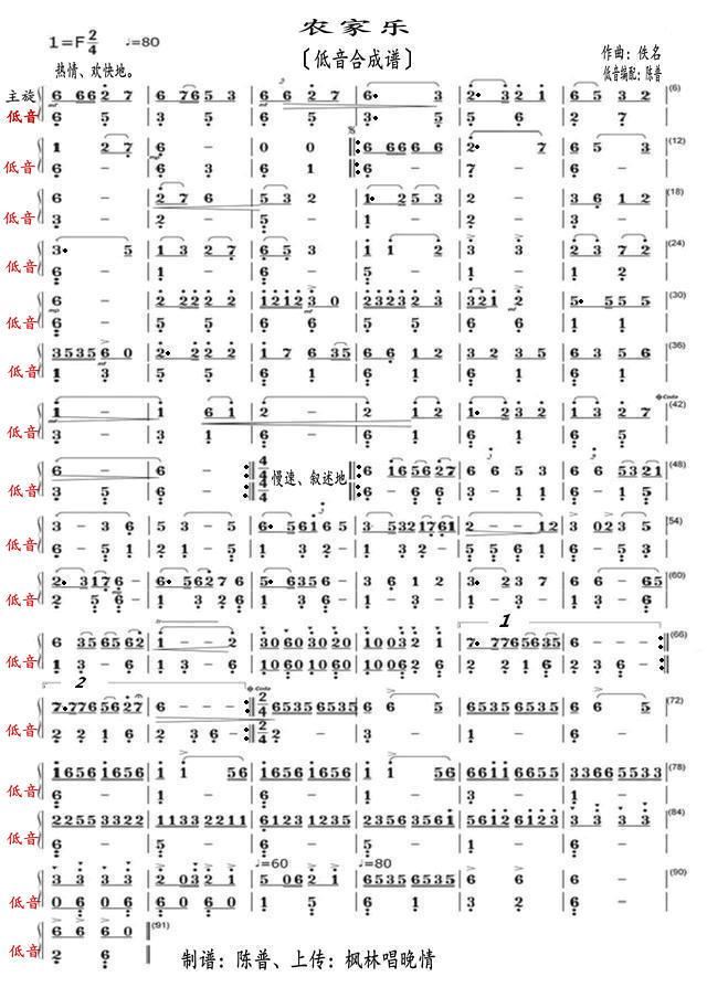 农家乐 低音合成谱
