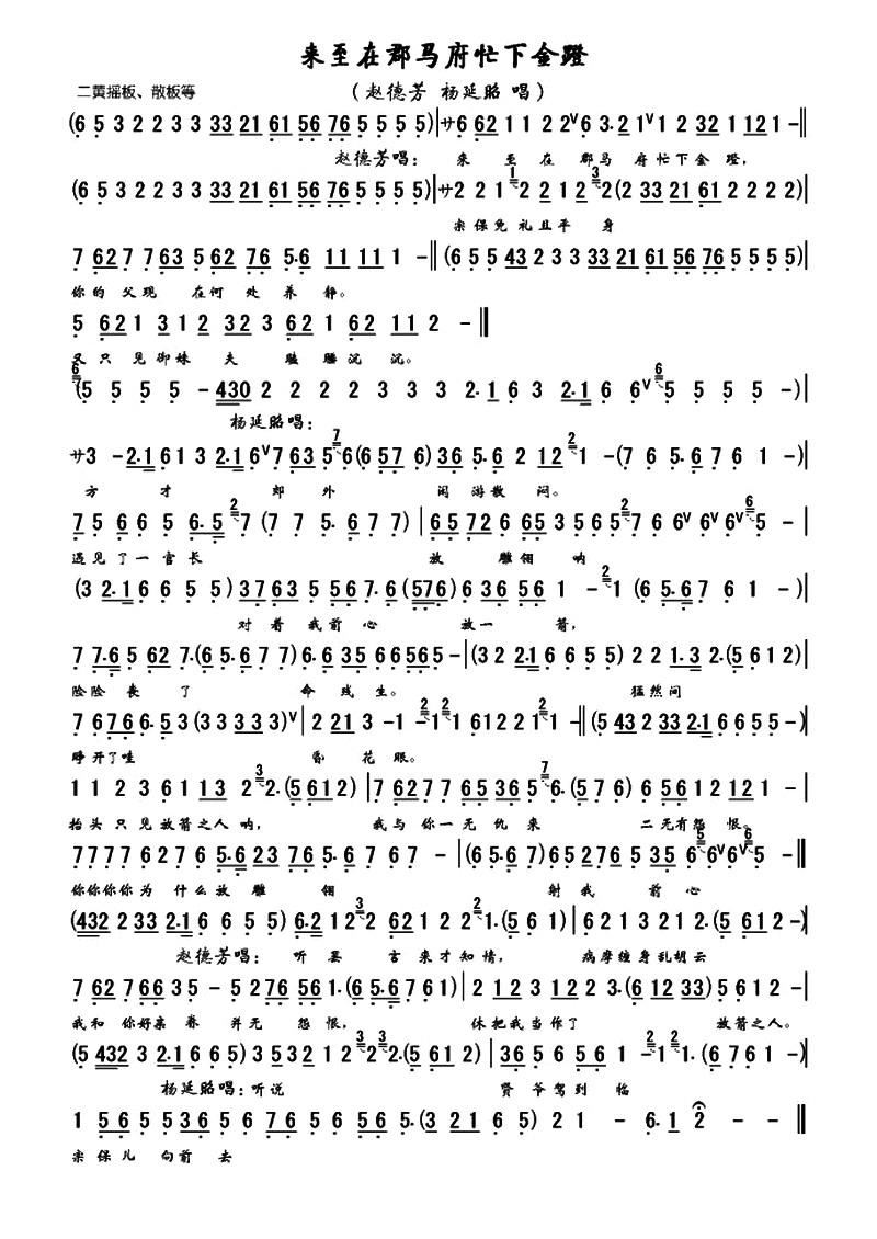 洪羊洞 全本唱段伴奏谱 来至在郡马府忙下金蹬 赵德芳 杨延昭唱段