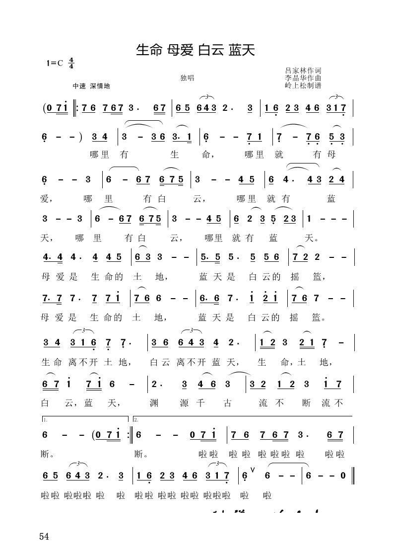 > 生命 母爱 白云 蓝天 李晶华专辑