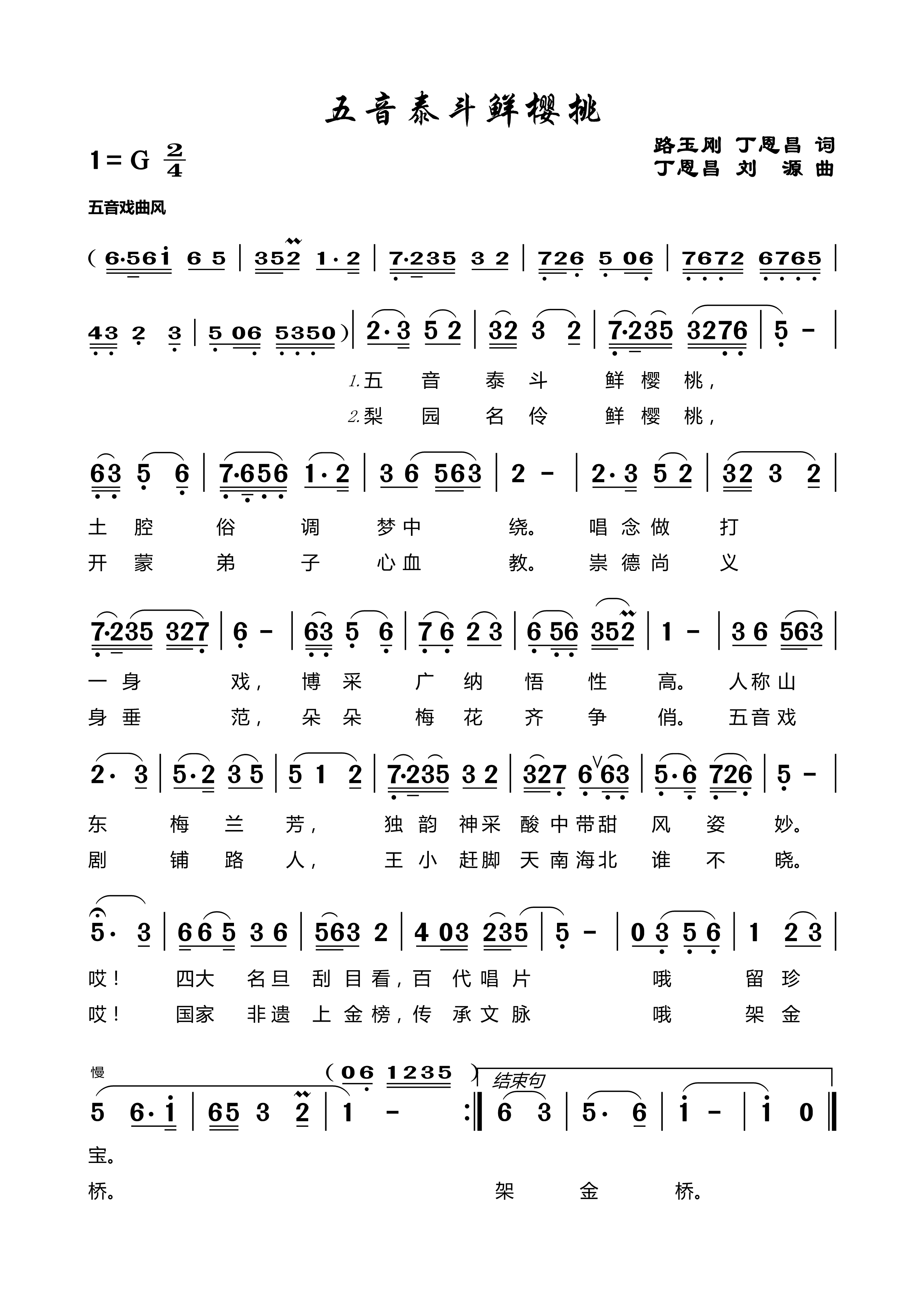 > 五音泰斗鲜樱桃 路玉刚丁恩昌词丁恩昌刘源曲