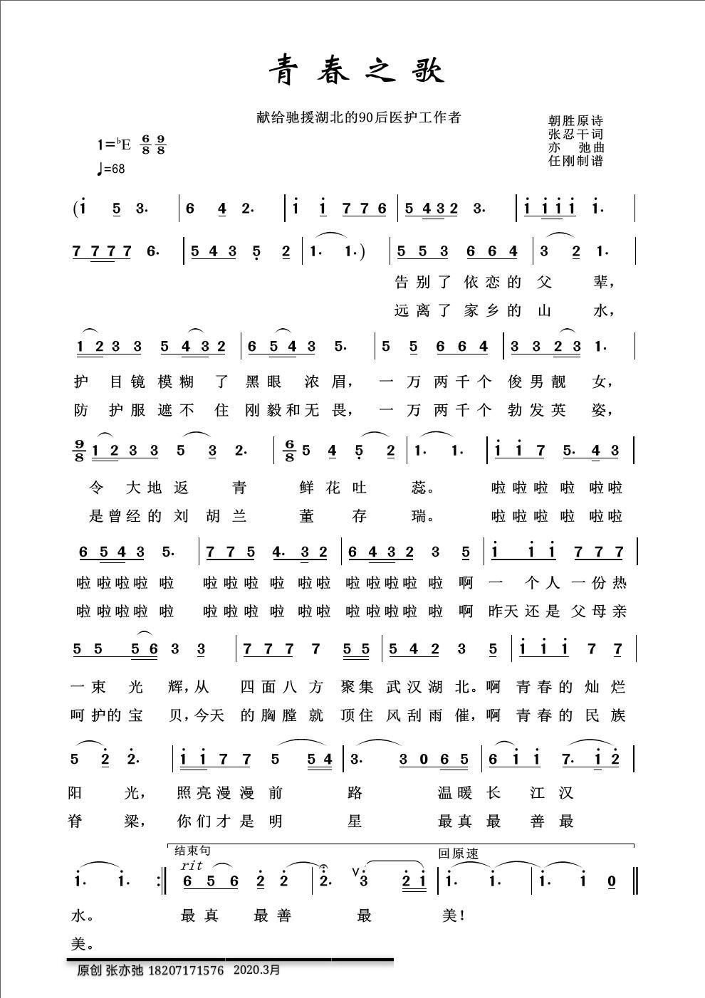 青春之歌 亦弛原创 献给驰援湖北的90后医护工作者