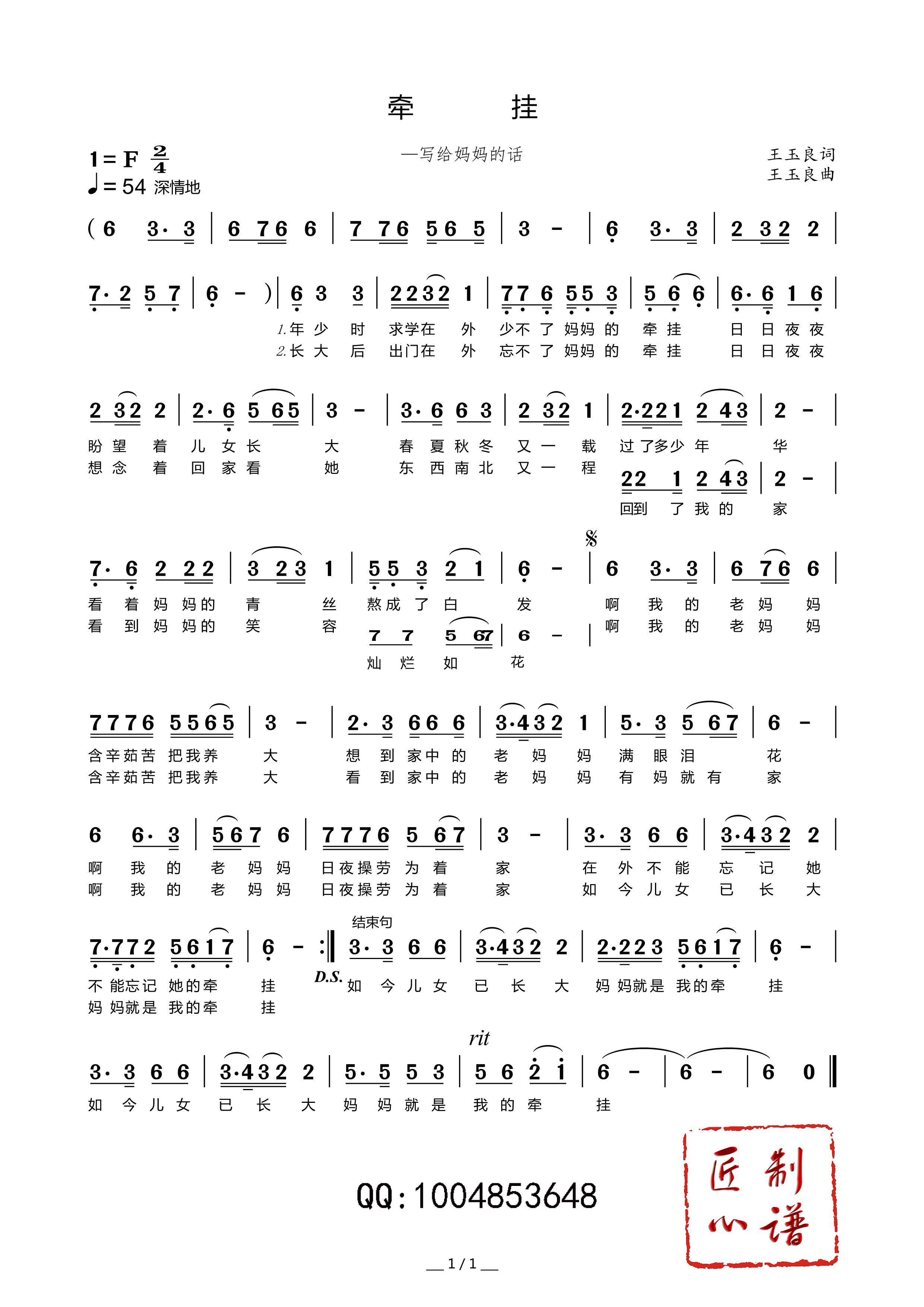 牵挂 写给妈妈的话