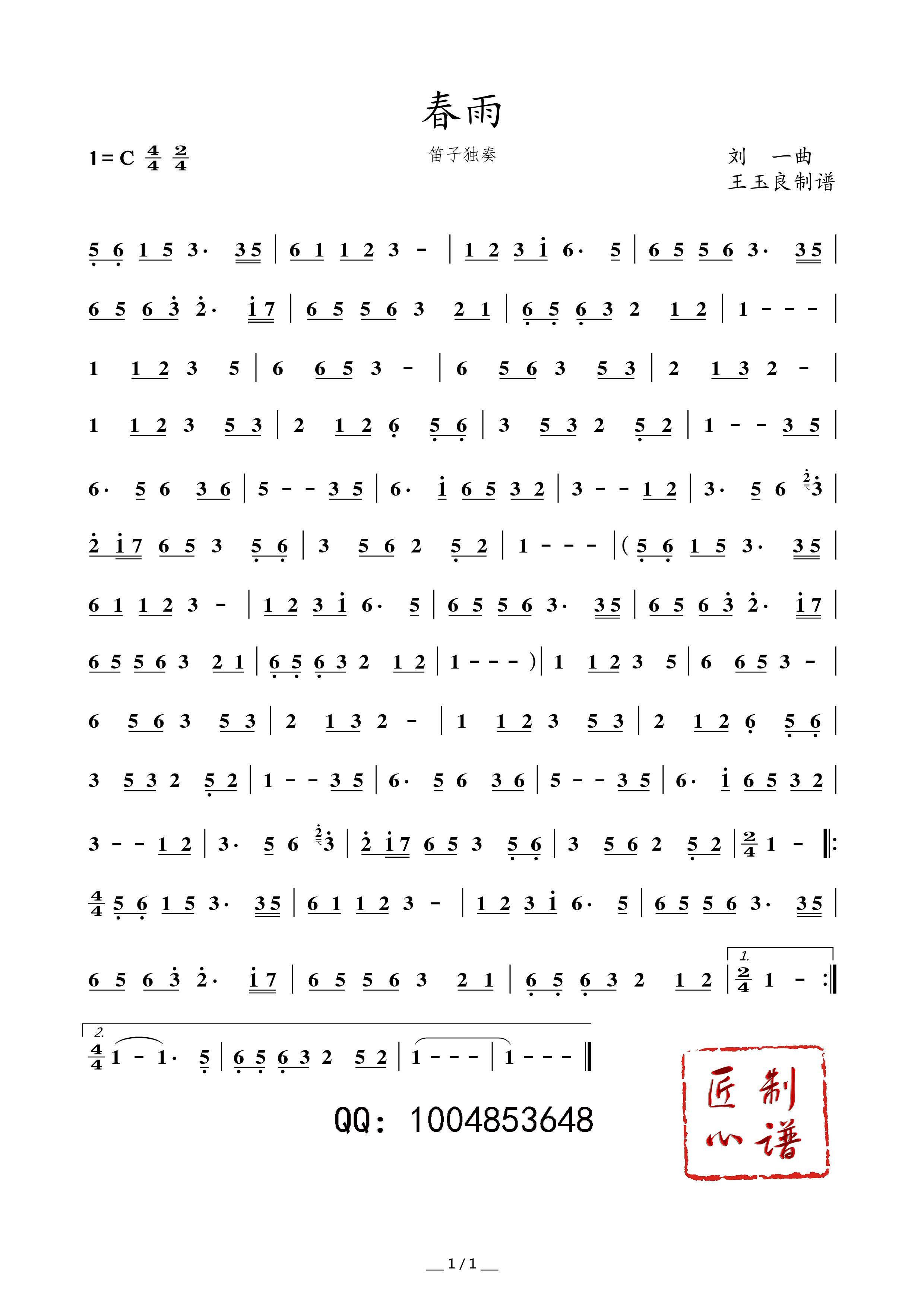> 春雨 竹笛独奏