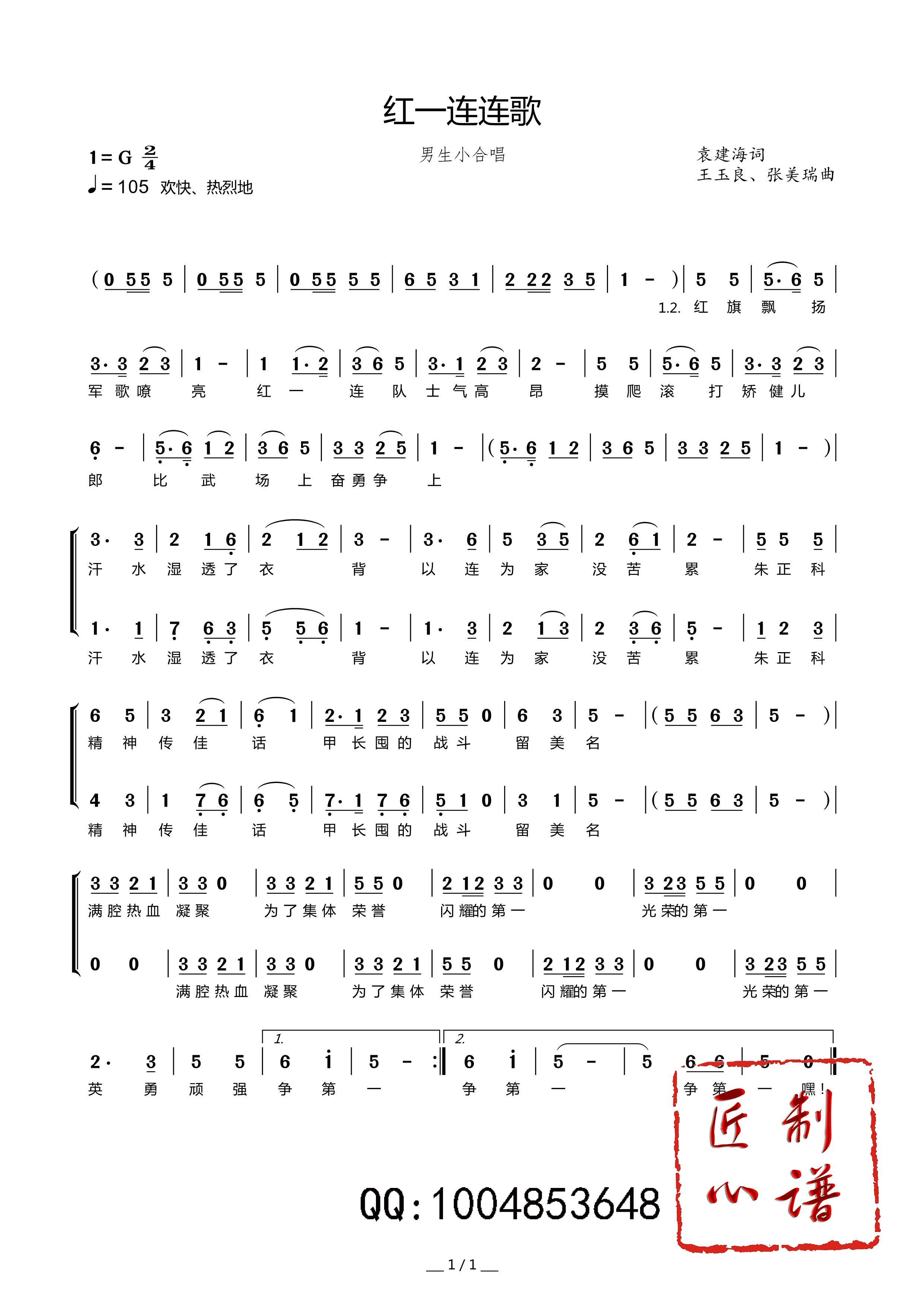 > 红一连连歌 男生小合唱
