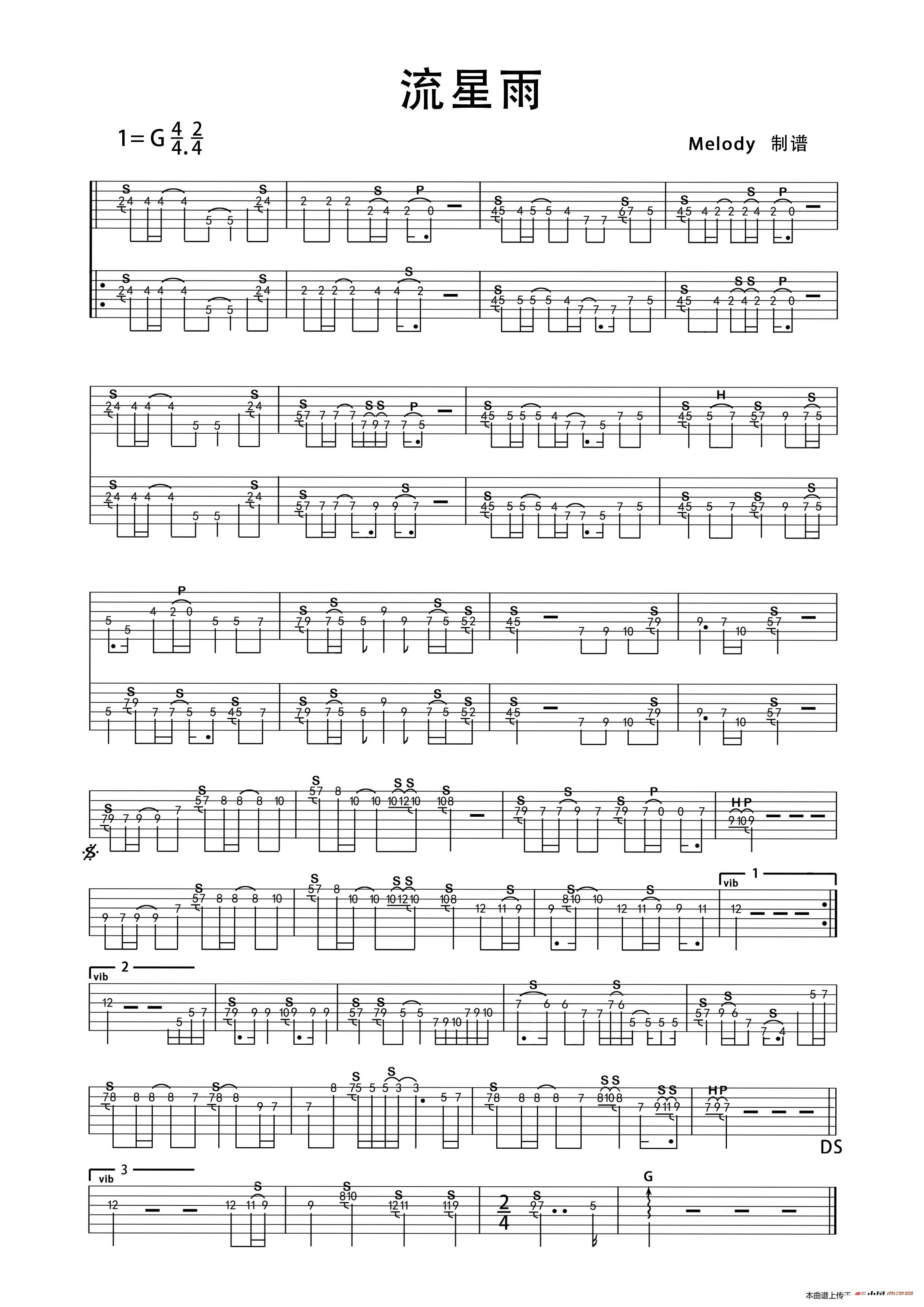> 流星雨 指弹版