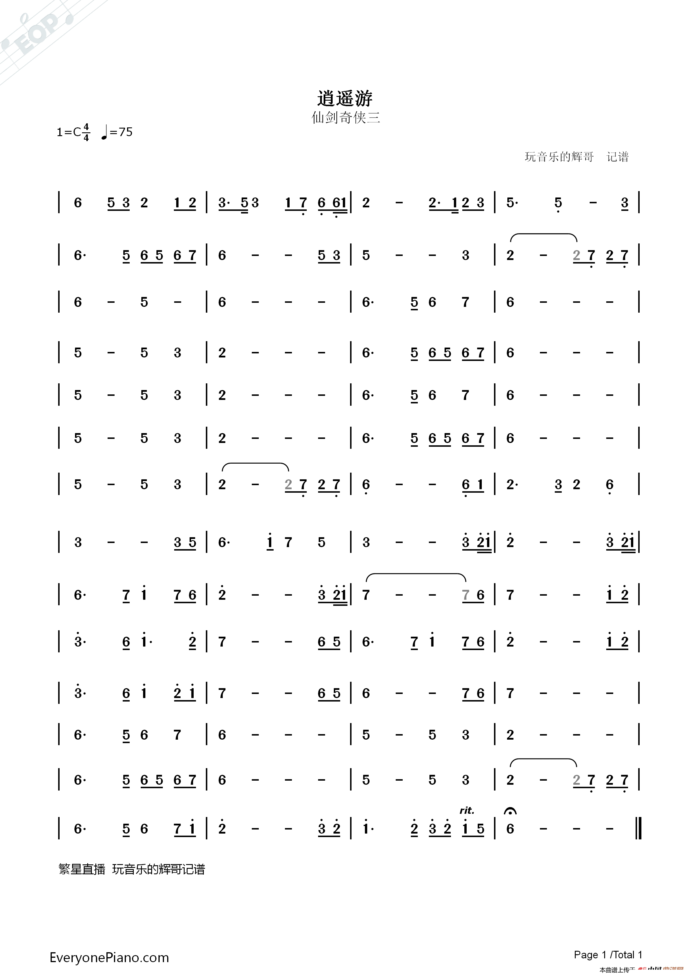 > 逍遥游 乐器专用谱
