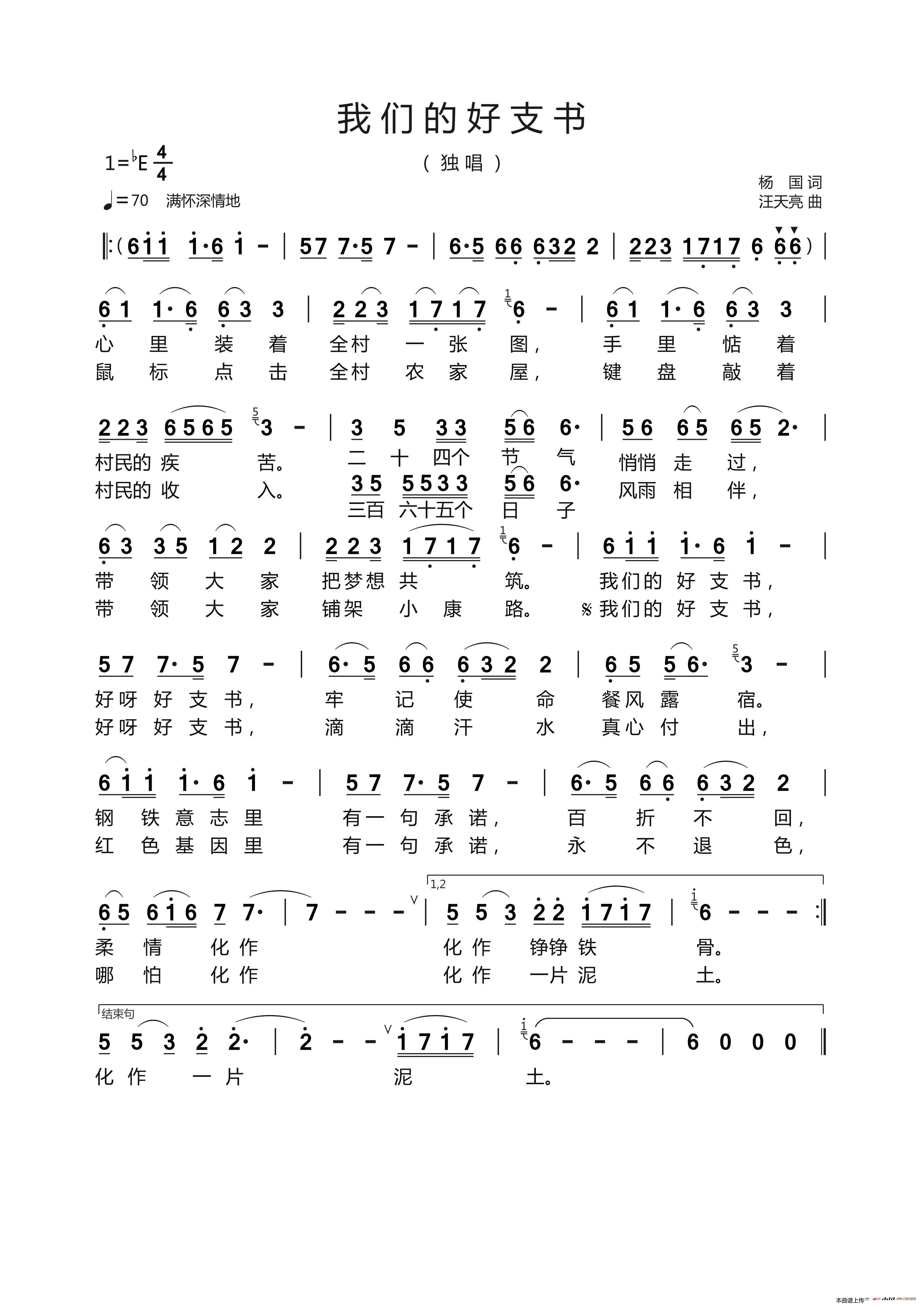 > 我们的好支书 杨 国 词