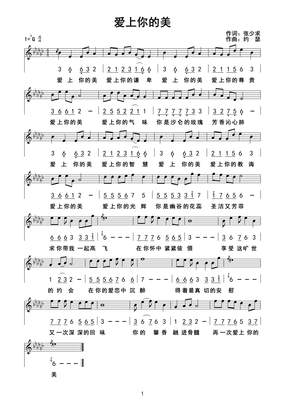 爱上你的美 官方谱