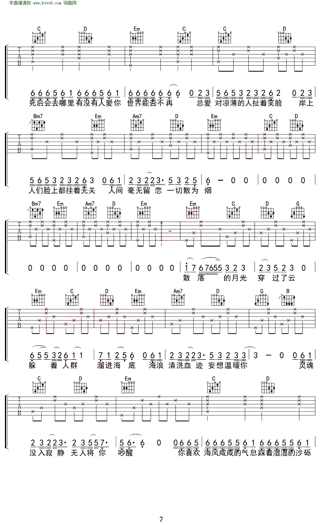 > 海底 G调弹唱谱