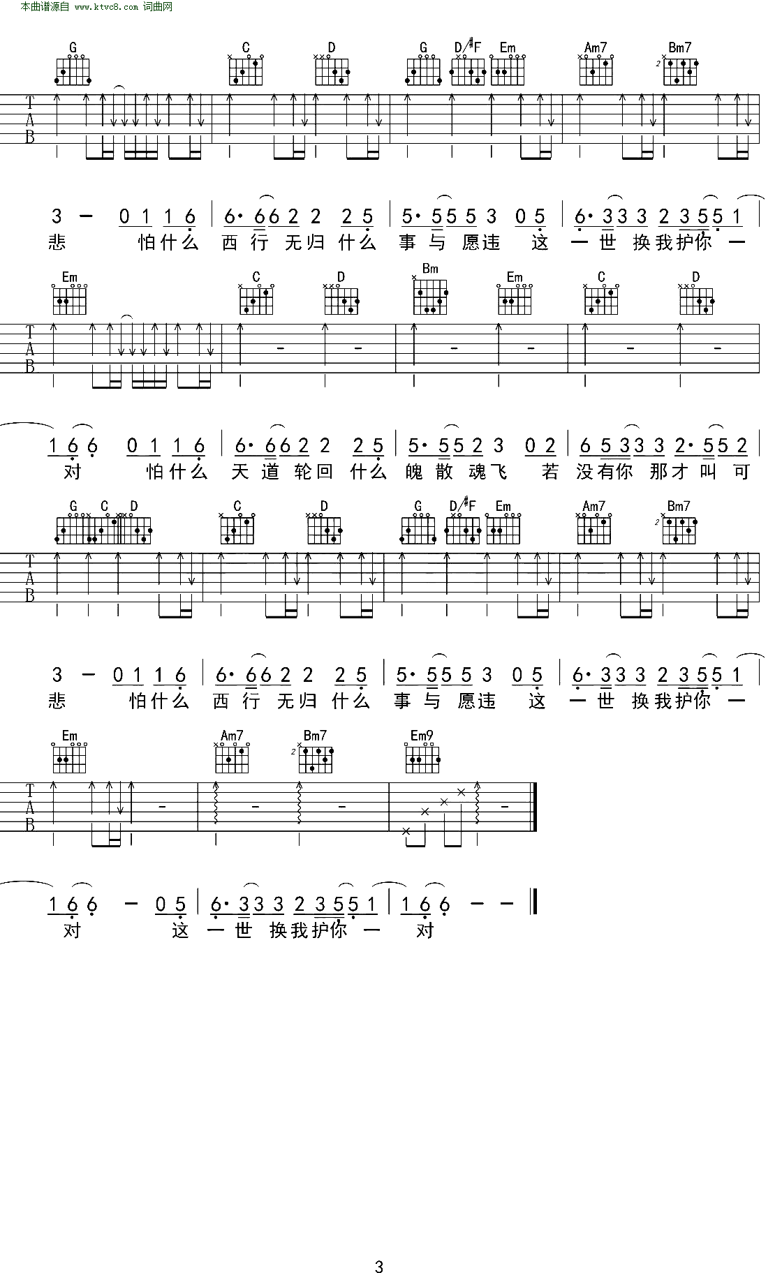 > 大天蓬 弹唱谱
