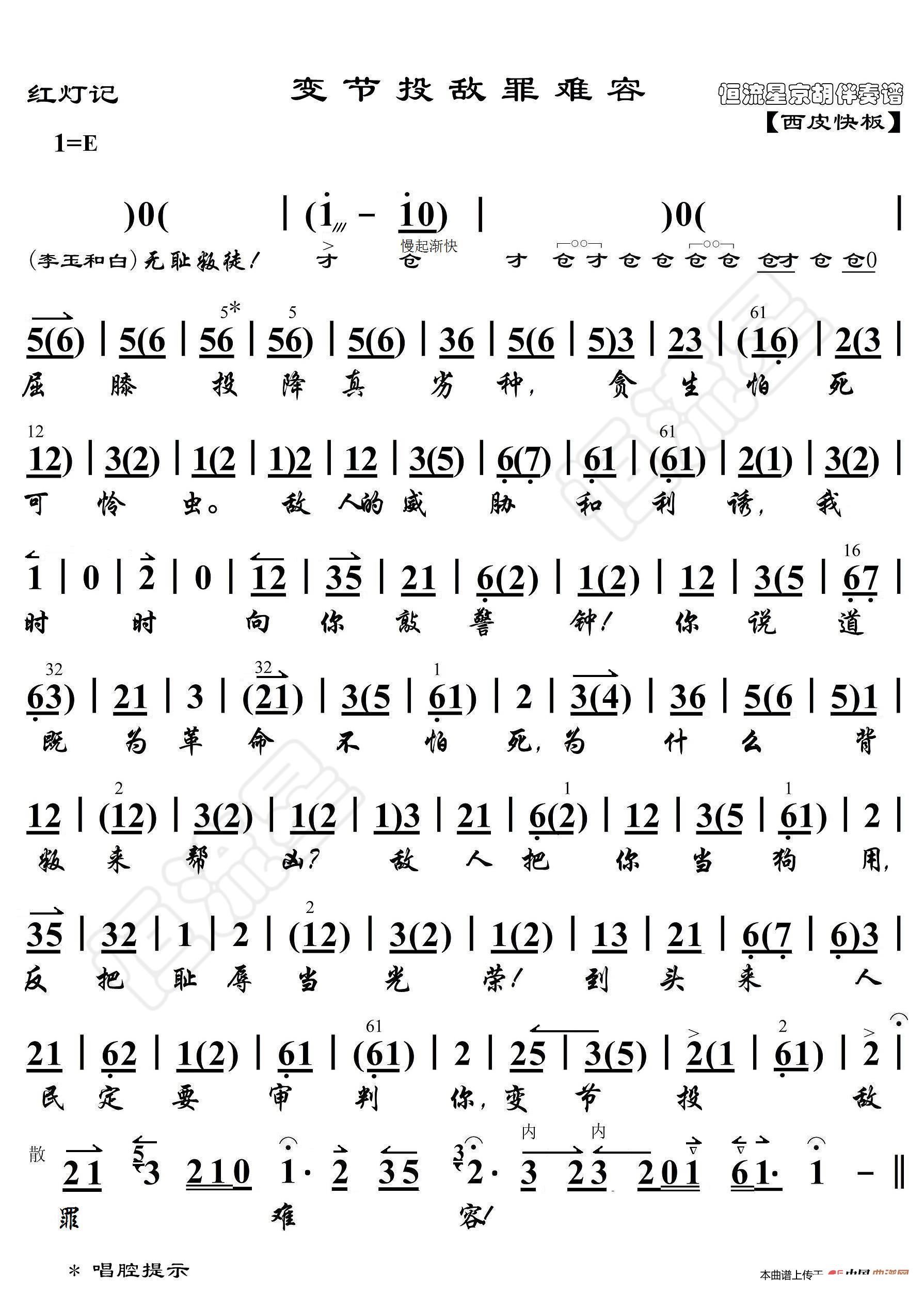 红灯记 变节投敌罪难容 京胡伴奏谱