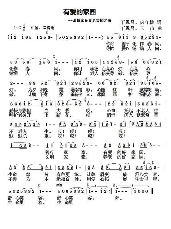 > 有爱的家园 丁恩昌巩守棣词