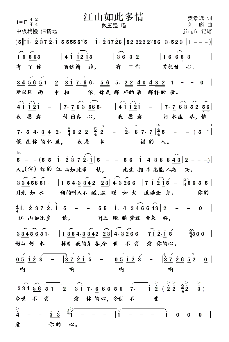 简谱网 > 歌谱 > 江山如此多情