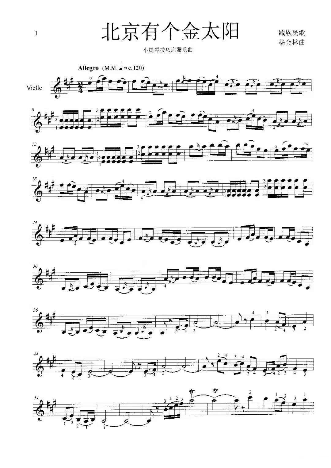 > 北京有个金太阳 小提琴技巧启蒙曲