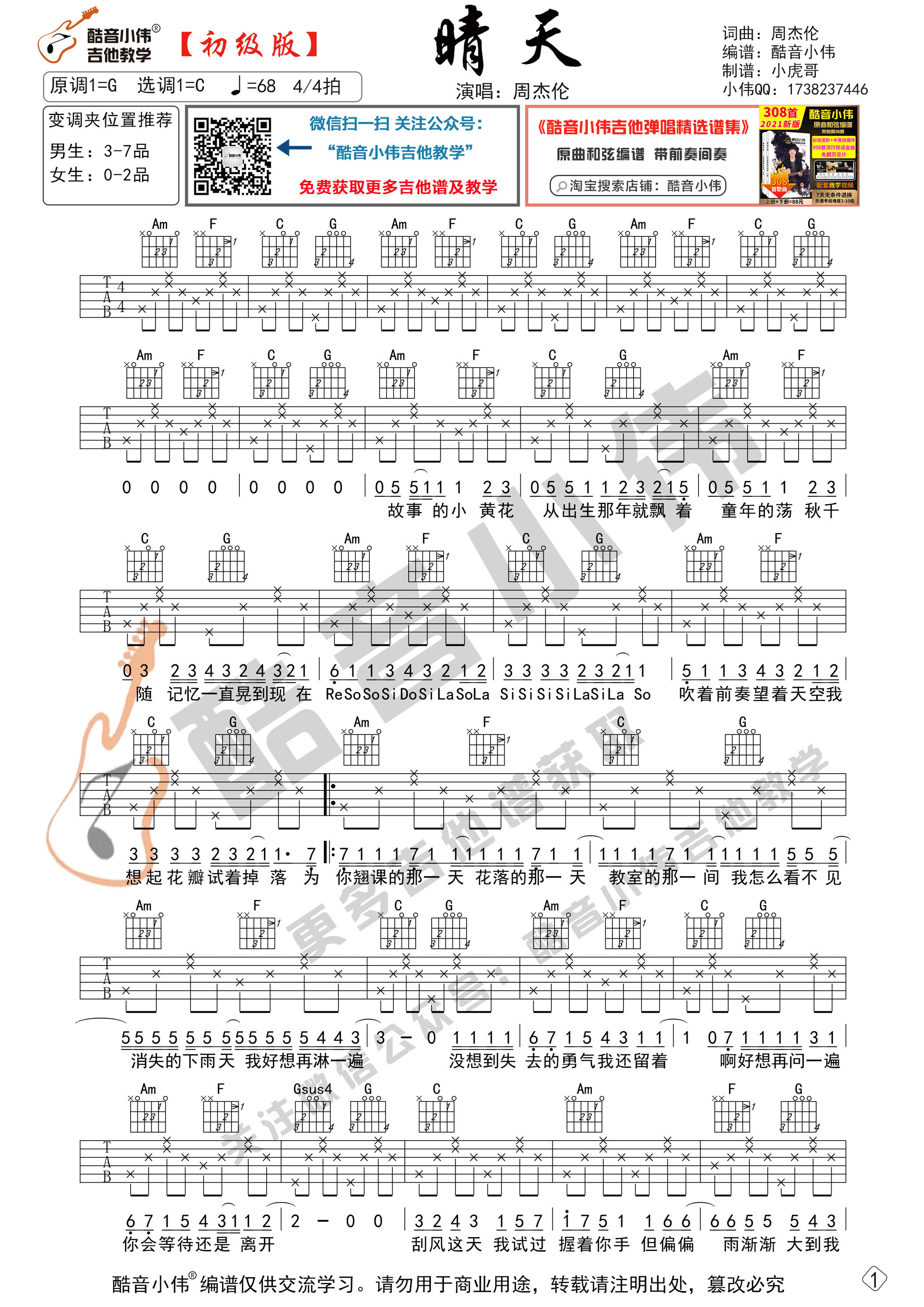 晴天 初级版 酷音小伟吉他教学
