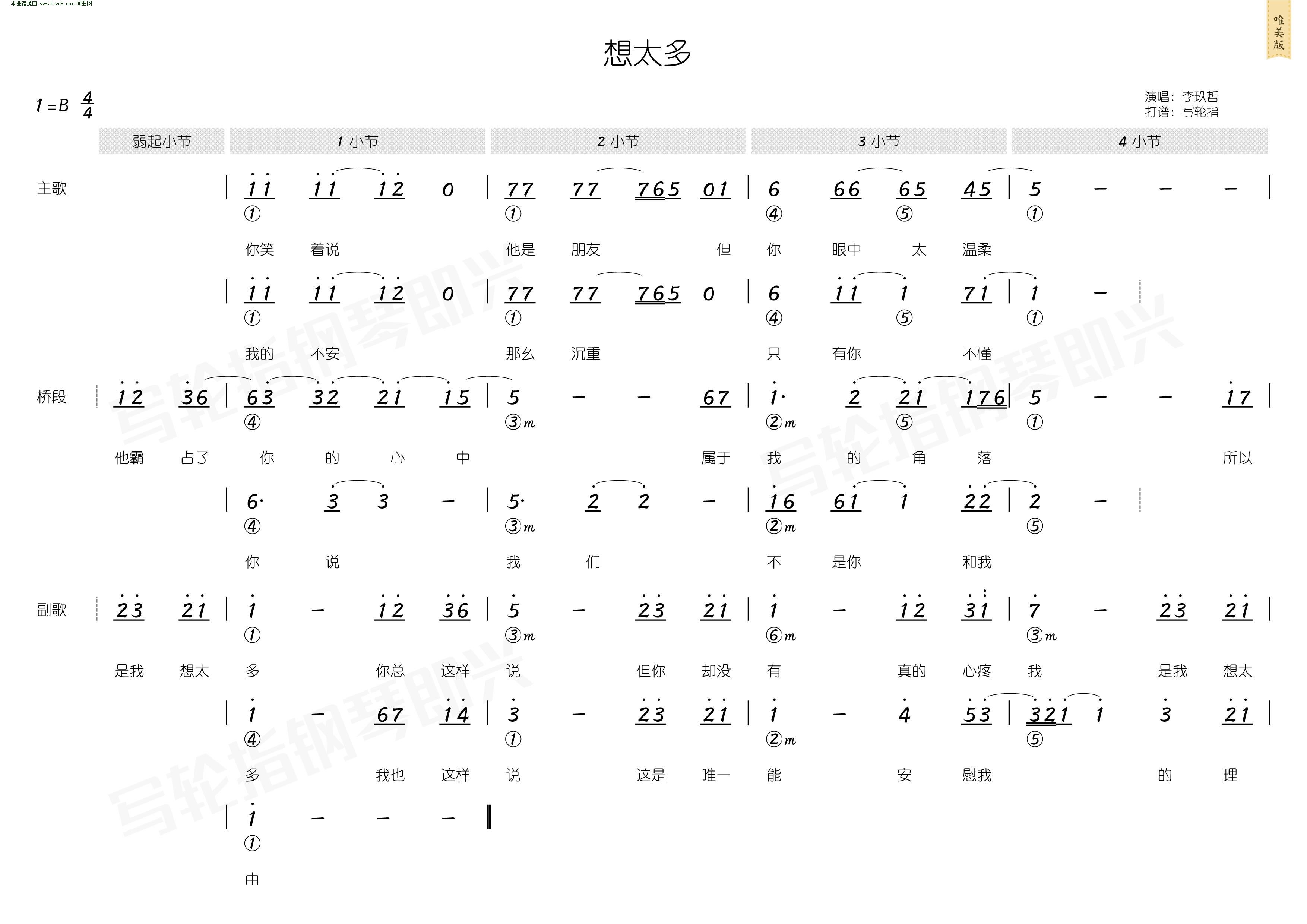 想太多 简和谱