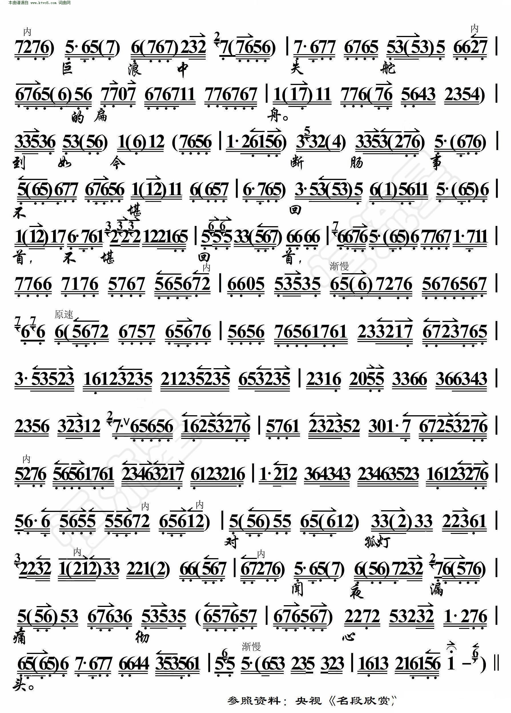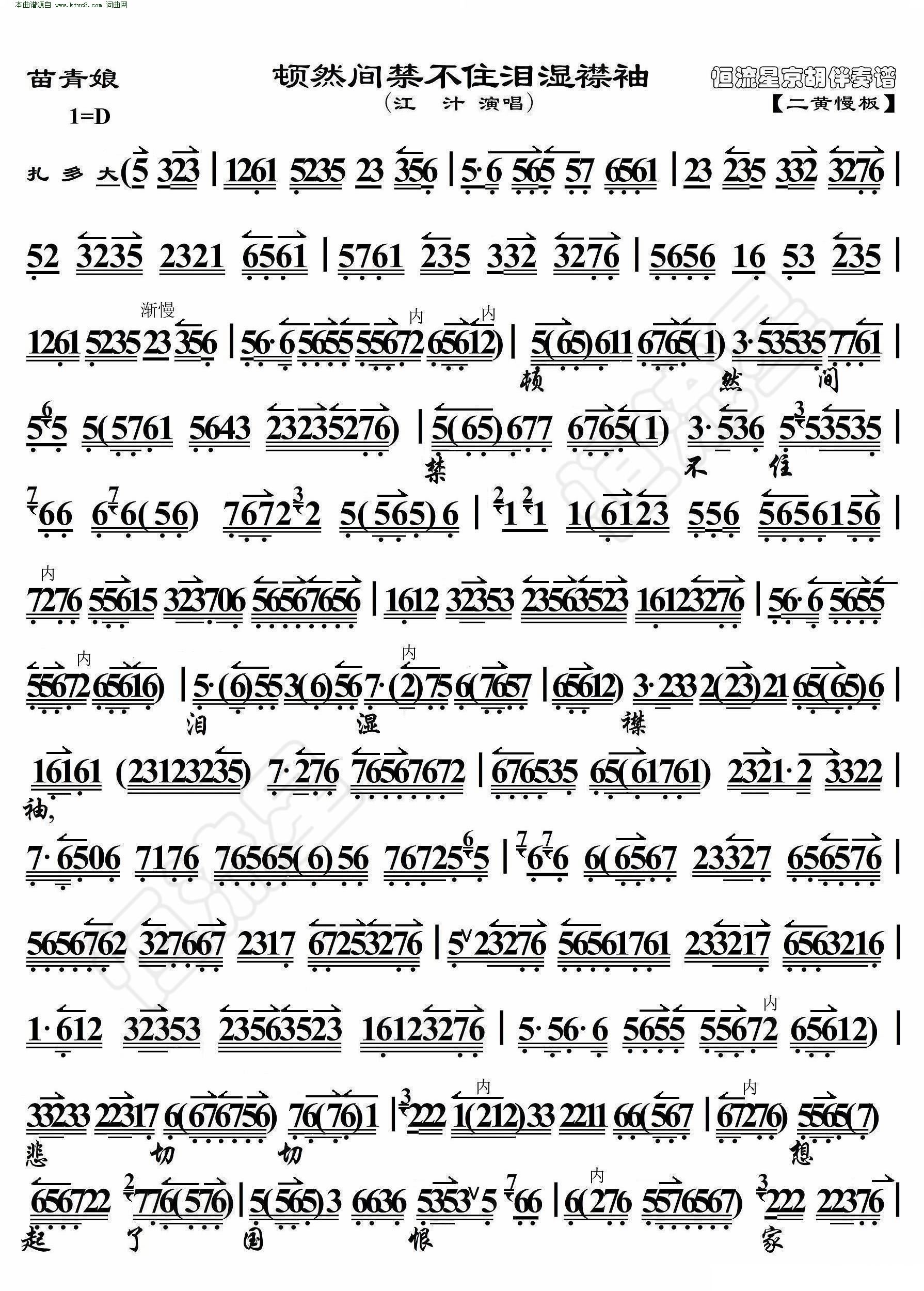 苗青娘 顿然间禁不住泪湿襟袖 京胡伴奏谱