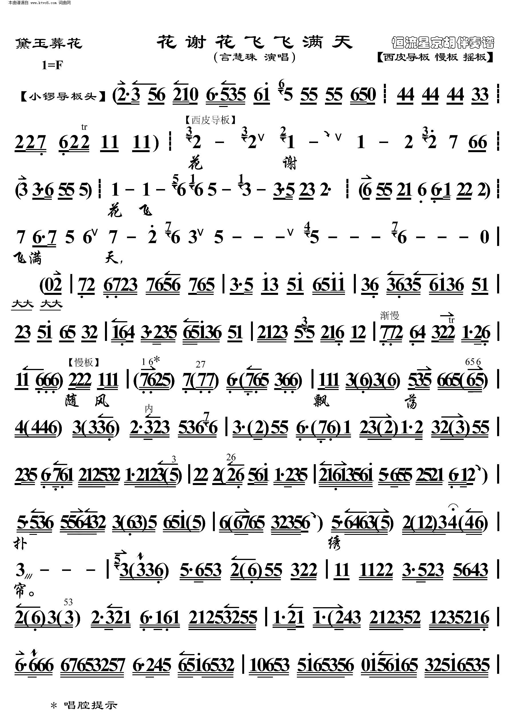 黛玉葬花 花谢花飞飞满天 京胡伴奏谱