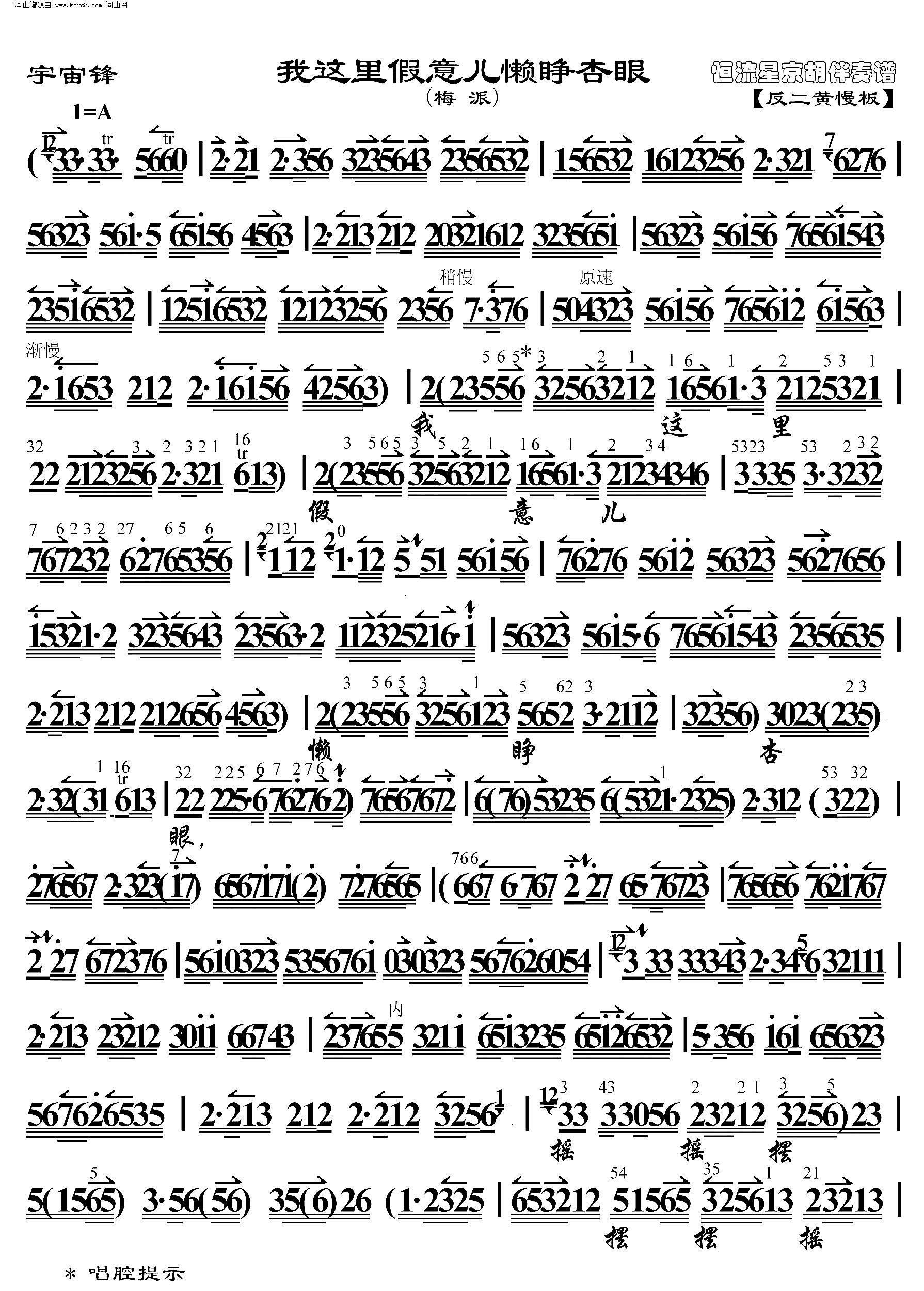 宇宙锋 我这里假意儿懒睁杏眼 京胡伴奏谱