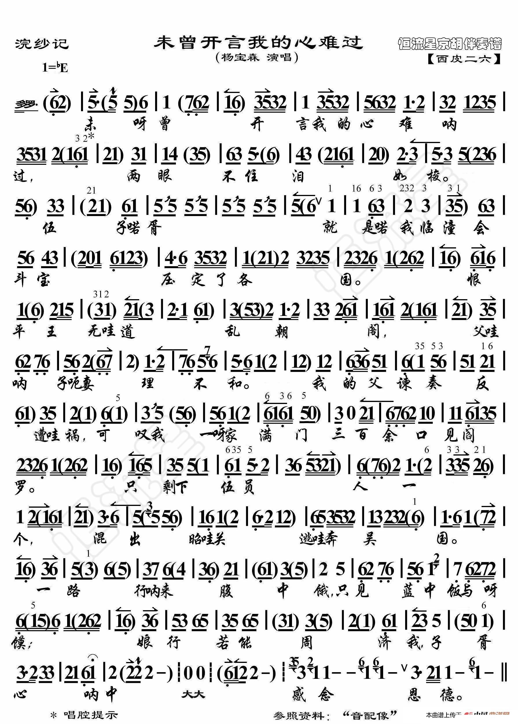 浣纱记 未曾开言我的心难过 京胡伴奏谱