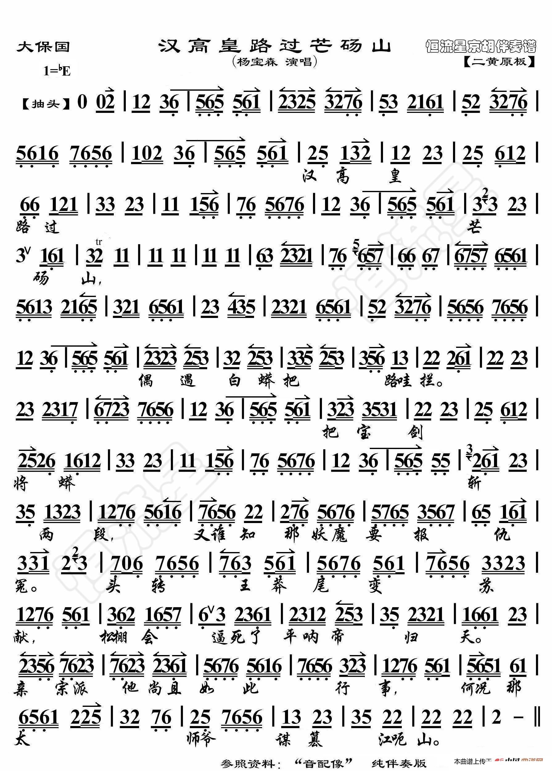 大保国 汉高皇路过芒砀山 京胡伴奏谱