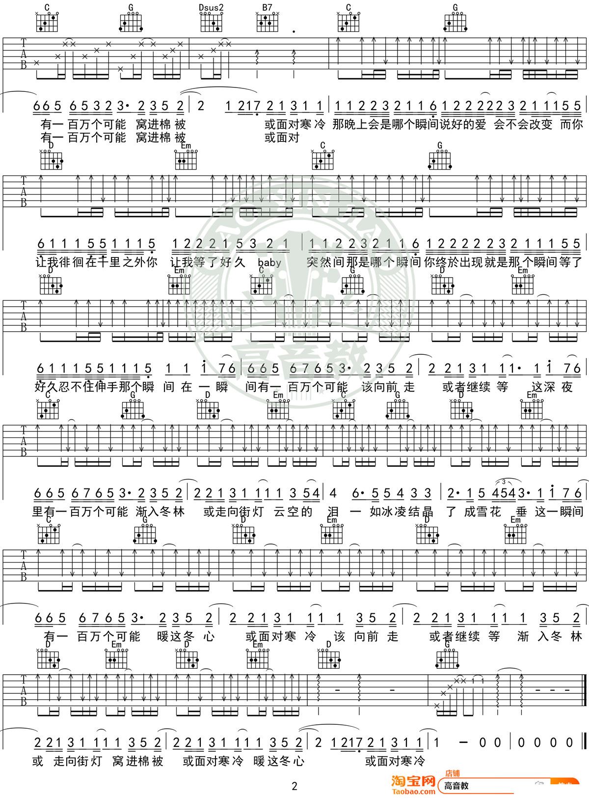一百万个可能 G调标准高清版 高音教编配