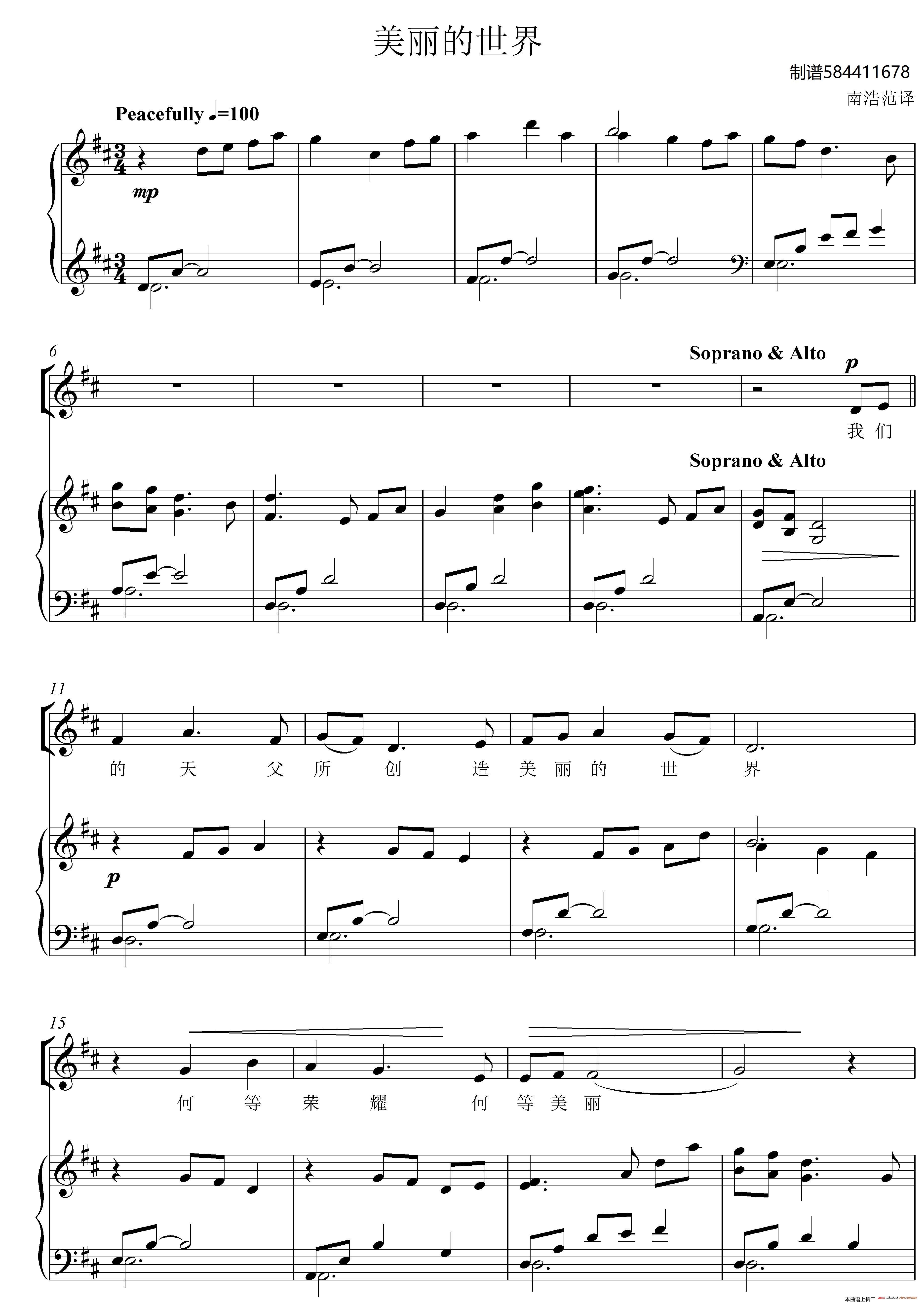 > 美丽的世界合唱谱