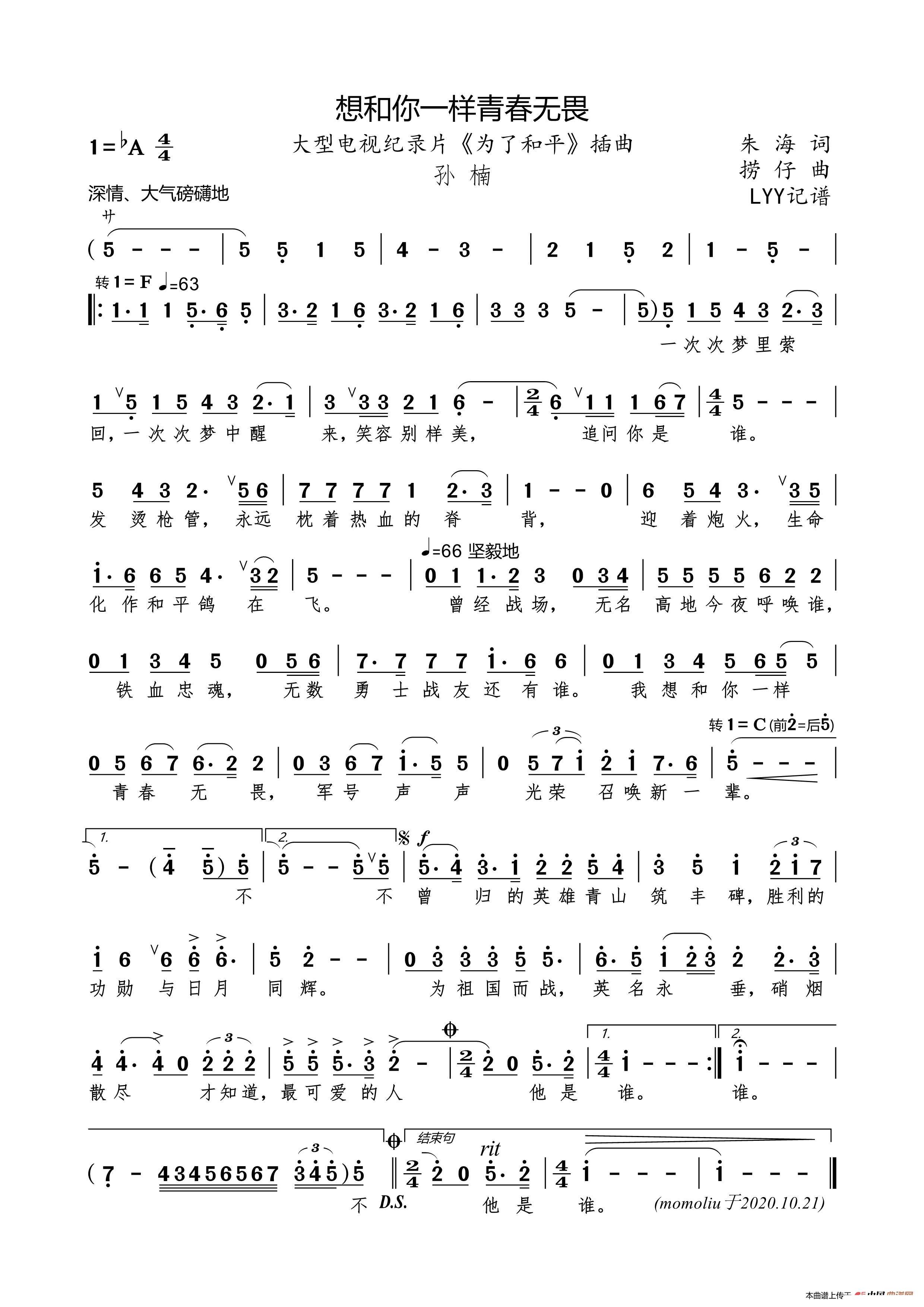 想和你一样青春无畏 大型电视纪录片 为了和平 插曲