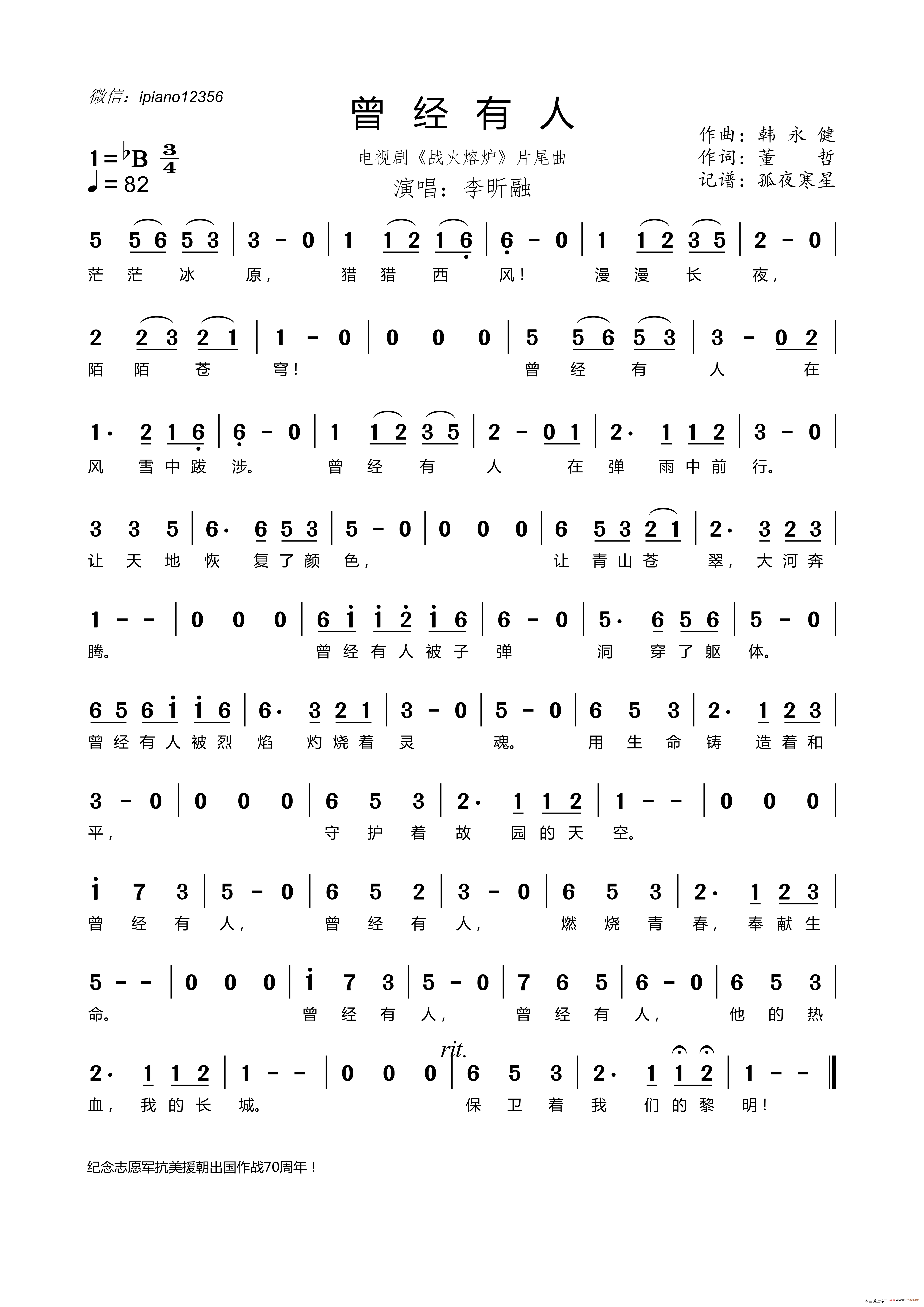 曾经有人 电视剧 战火熔炉 片尾曲