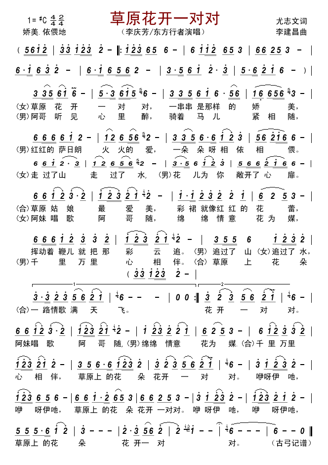 > 草原花开一对对