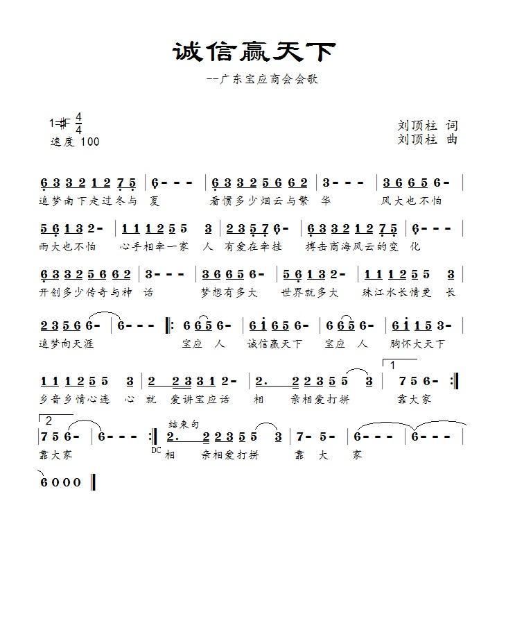 诚信赢天下 广东宝应商会会歌