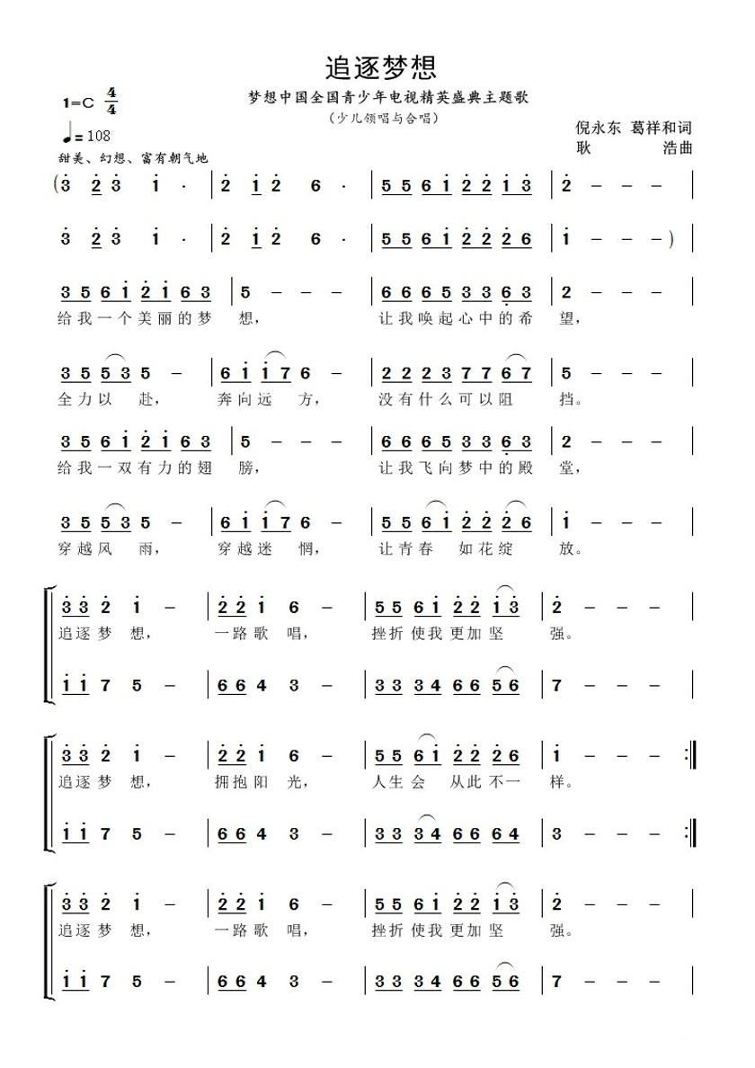 > 追逐梦想 cctv梦想中国全国青少年电视精英盛典主题歌