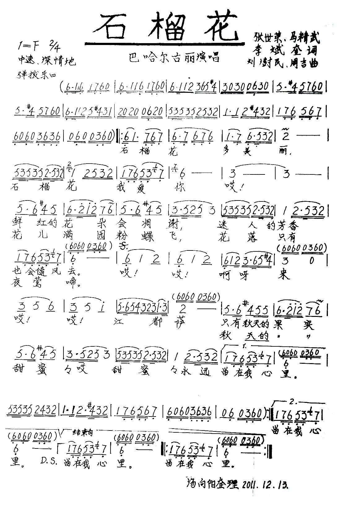 > 石榴花 手稿版