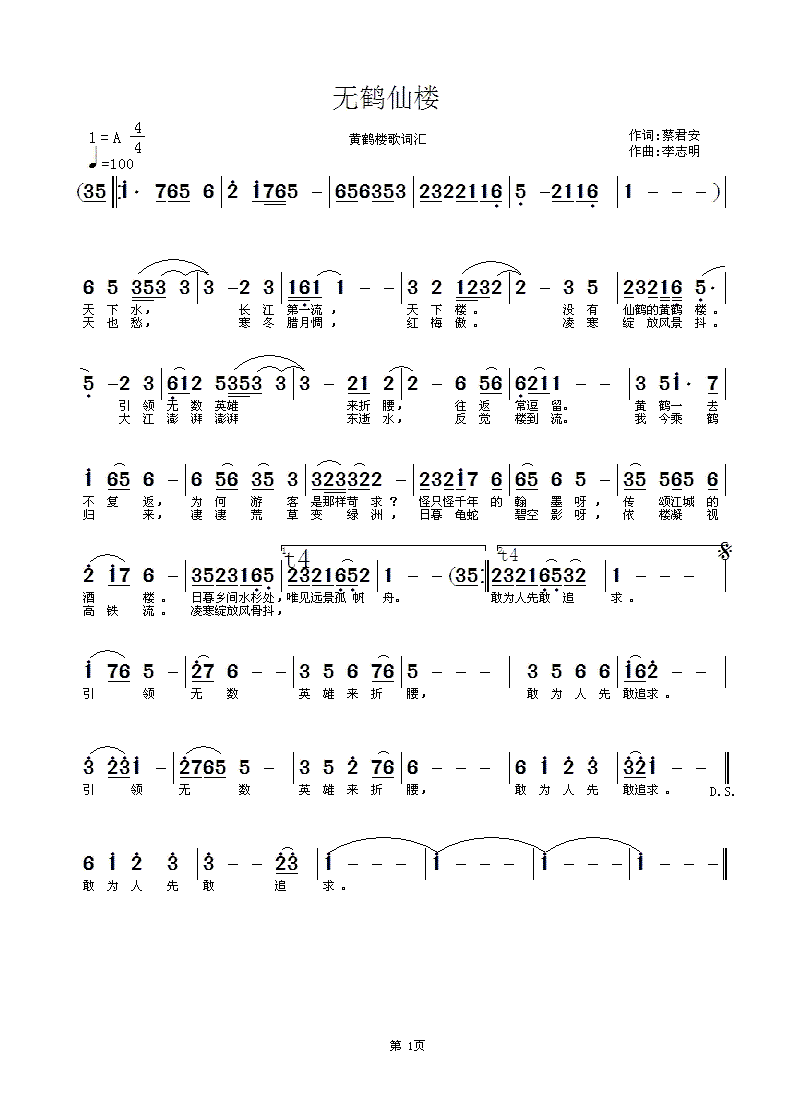 > 无鹤仙楼黄鹤楼歌词汇