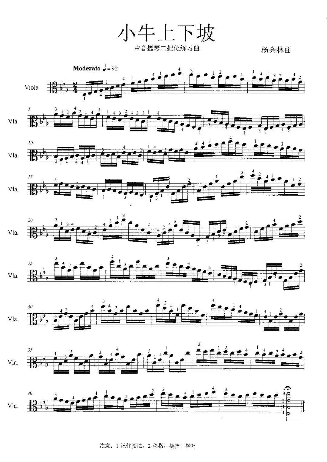 小牛上下坡 中音提琴二把位练习曲