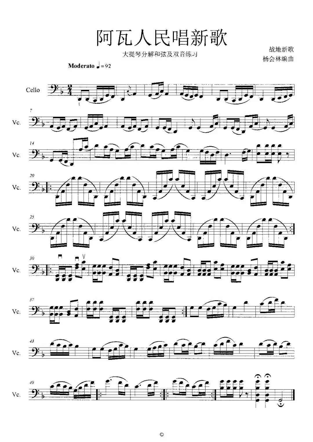 > 阿瓦人民唱新歌 大提琴分解和弦及双音练习
