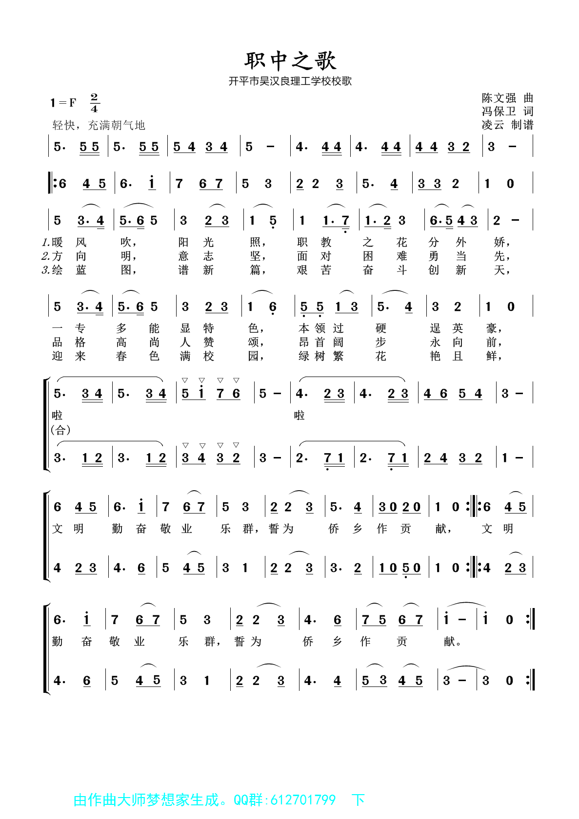 职中之歌 开平市吴汉良理工学校校歌