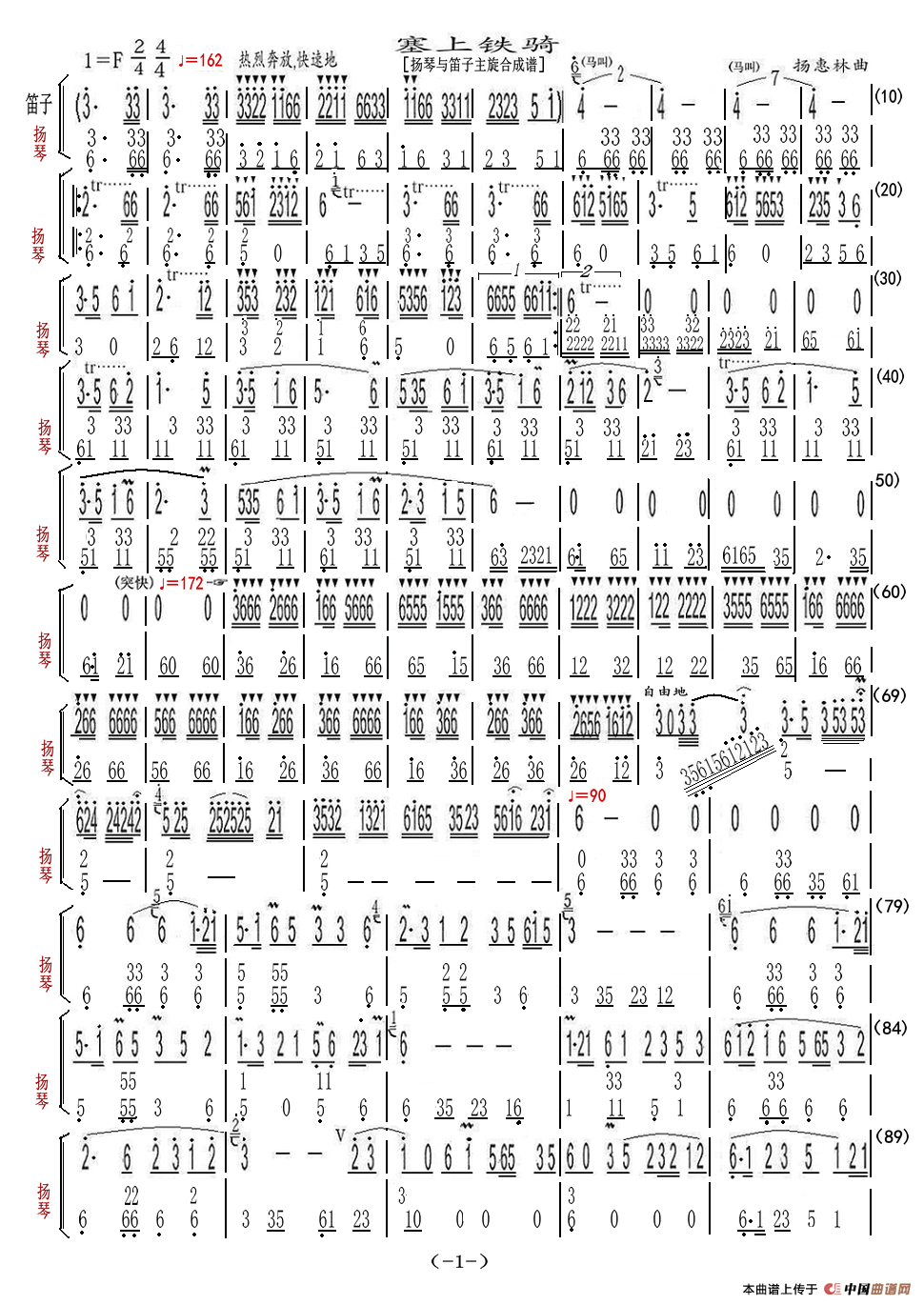 > 塞上铁骑 扬琴与笛子主旋合成谱