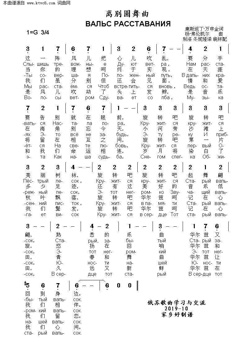 离别圆舞曲 ВАЛЬС РАССТАВАНИЯ 中俄