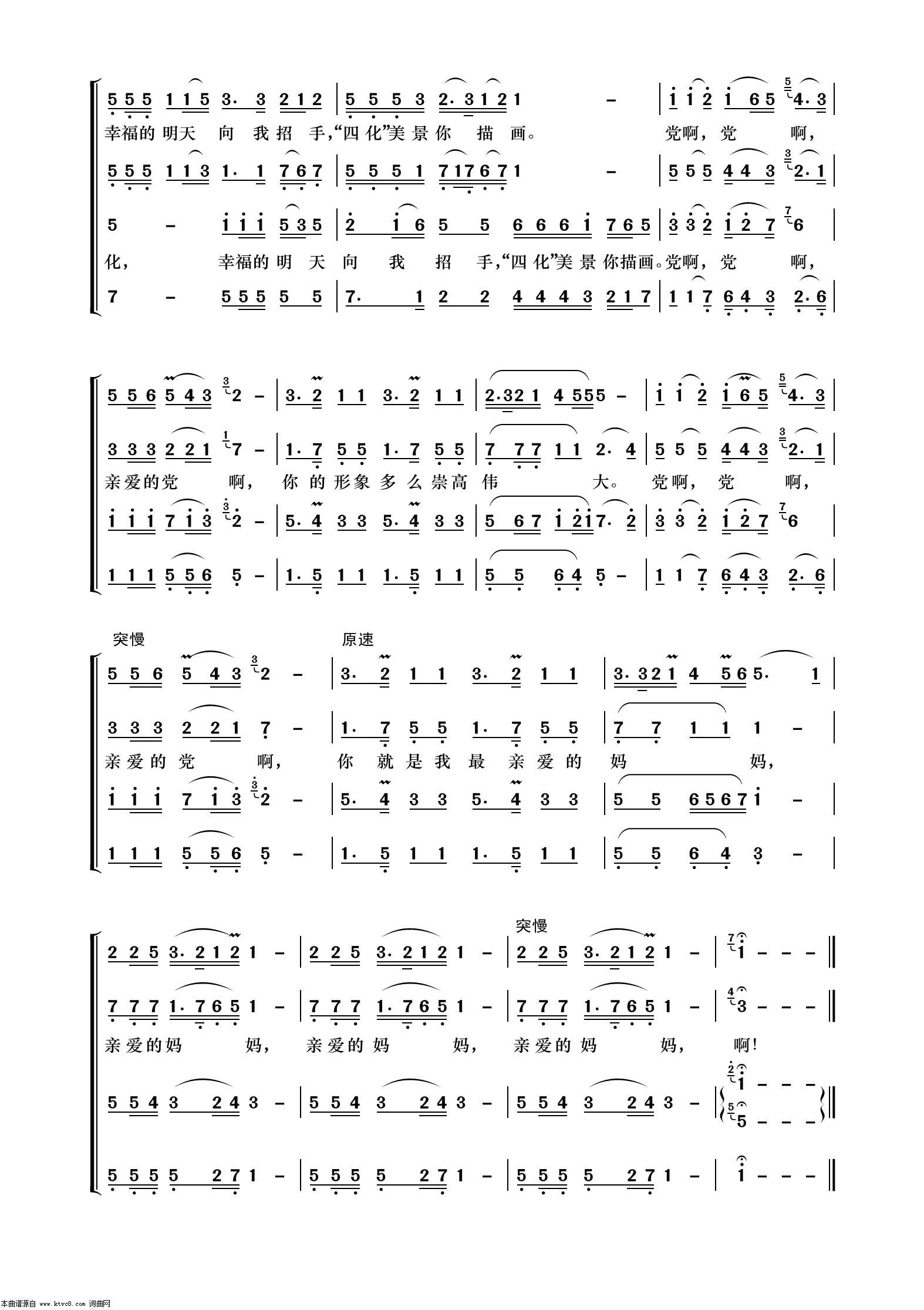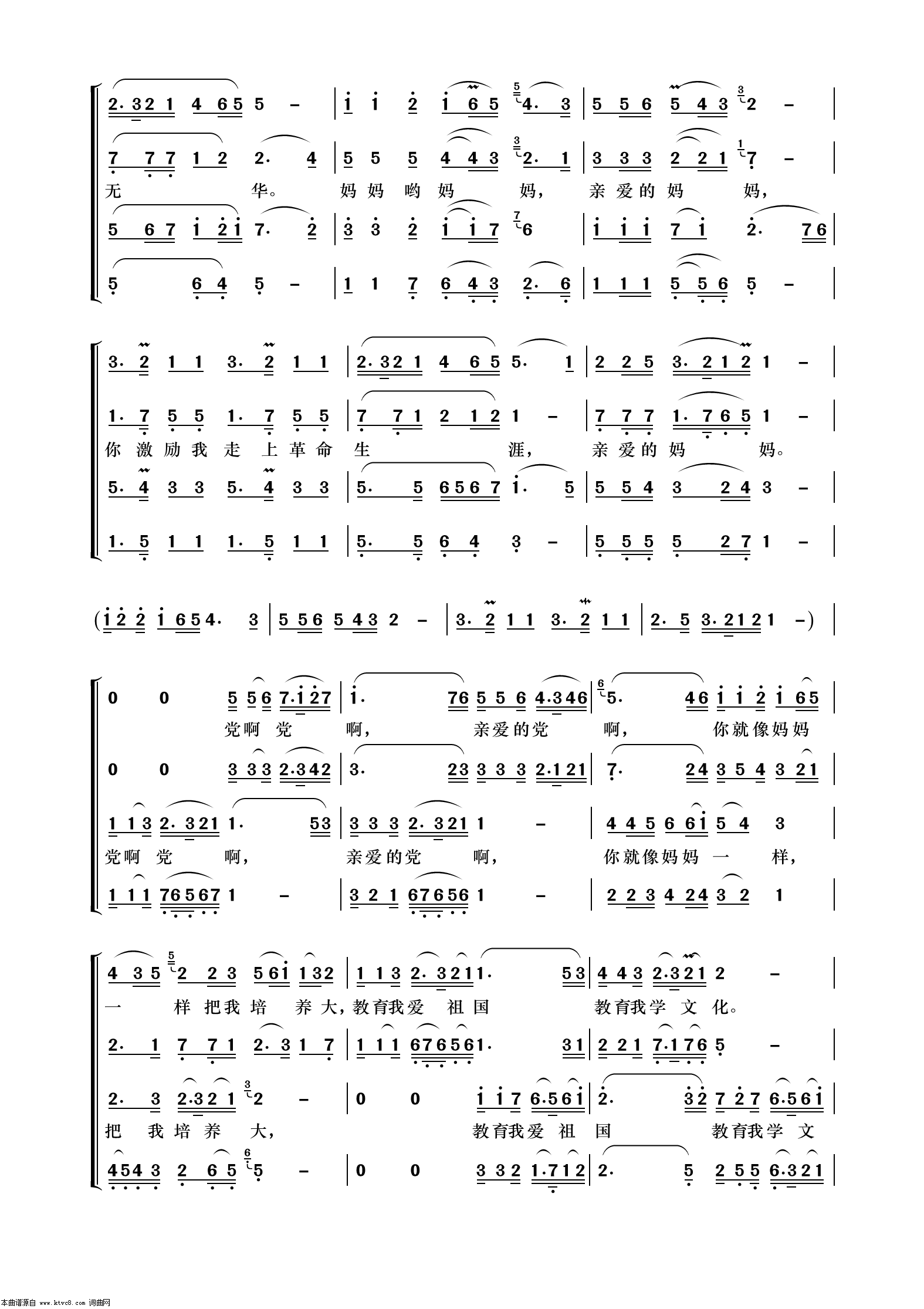 > 党啊 亲爱的妈妈 无伴奏合唱