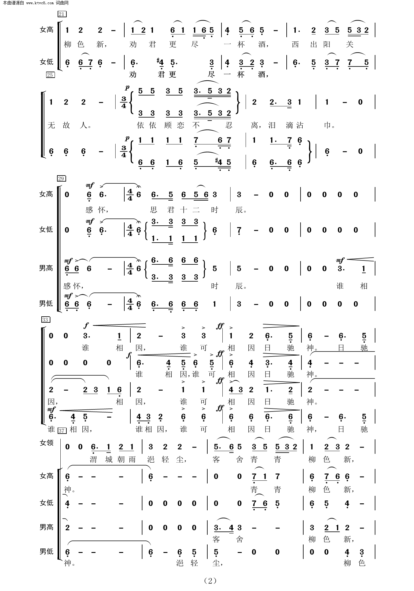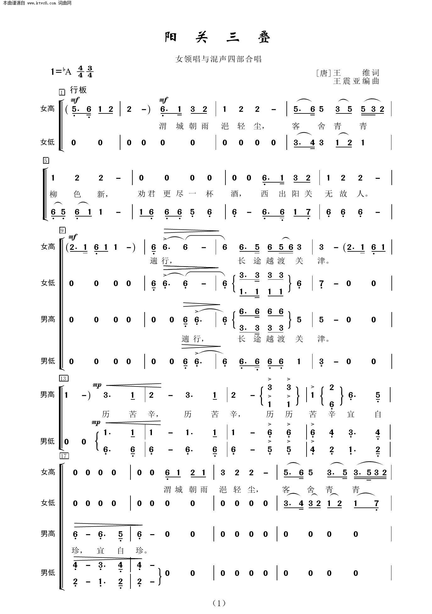 阳关三叠 女领唱与混声四部合唱