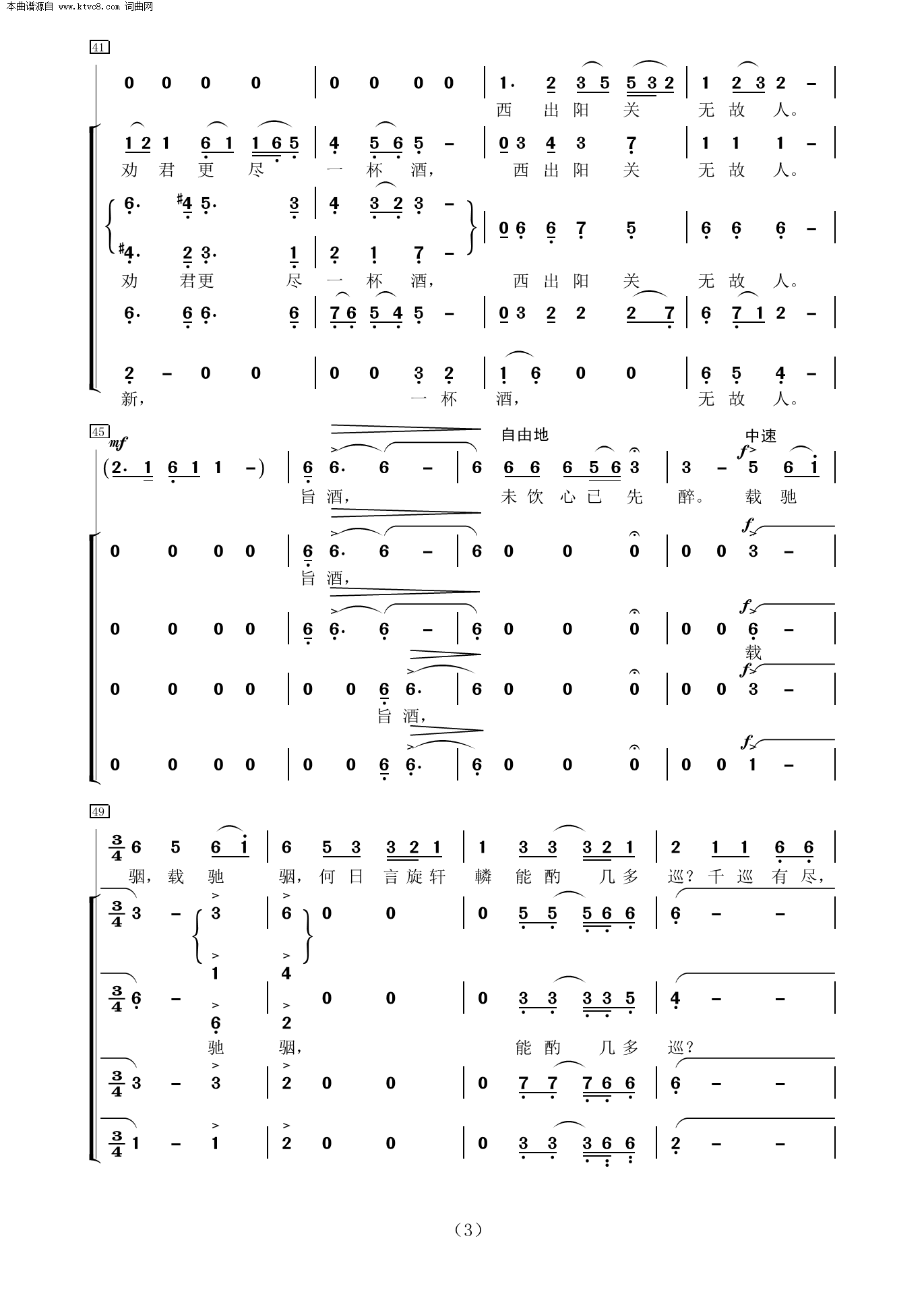 > 阳关三叠 女领唱与混声四部合唱