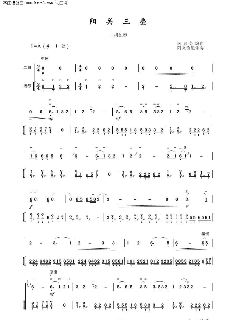 阳关三叠 二胡独奏