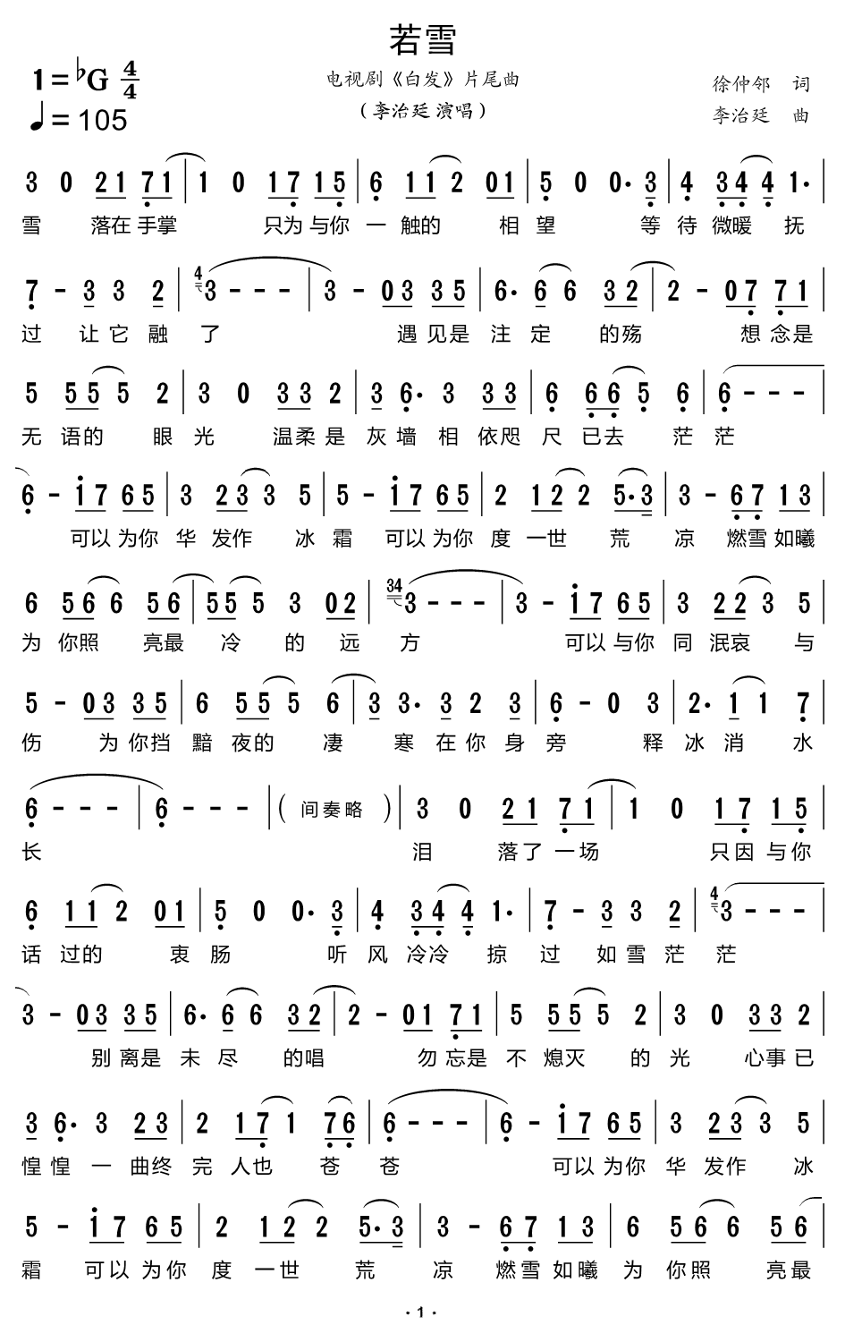 > 若雪 电视剧 白发 片尾曲