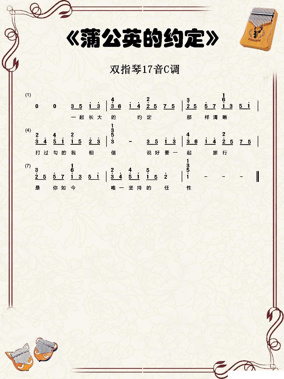 蒲公英的约定 双指琴卡林巴琴