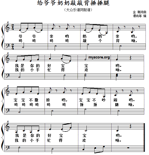 > 给爷爷奶奶敲敲背捶捶腿 儿歌钢琴弹唱伴奏
